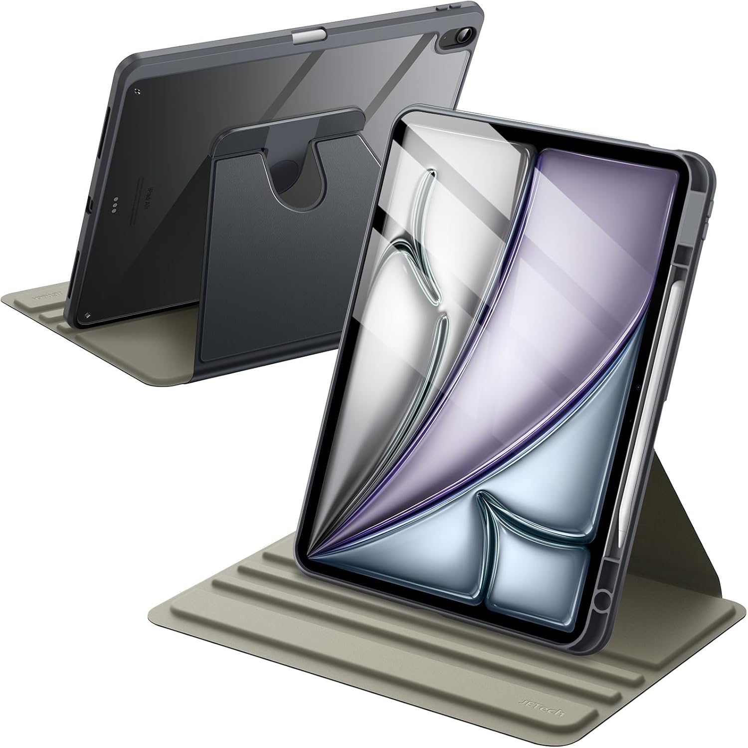 JETech Rotating Case for iPad Air 13-Inch M3/M2 (2025/2024) with Pencil Holder, 360 Degree Rotation Protective Stand Cover Clear Back, Auto Wake/Sleep (Space Gray)
