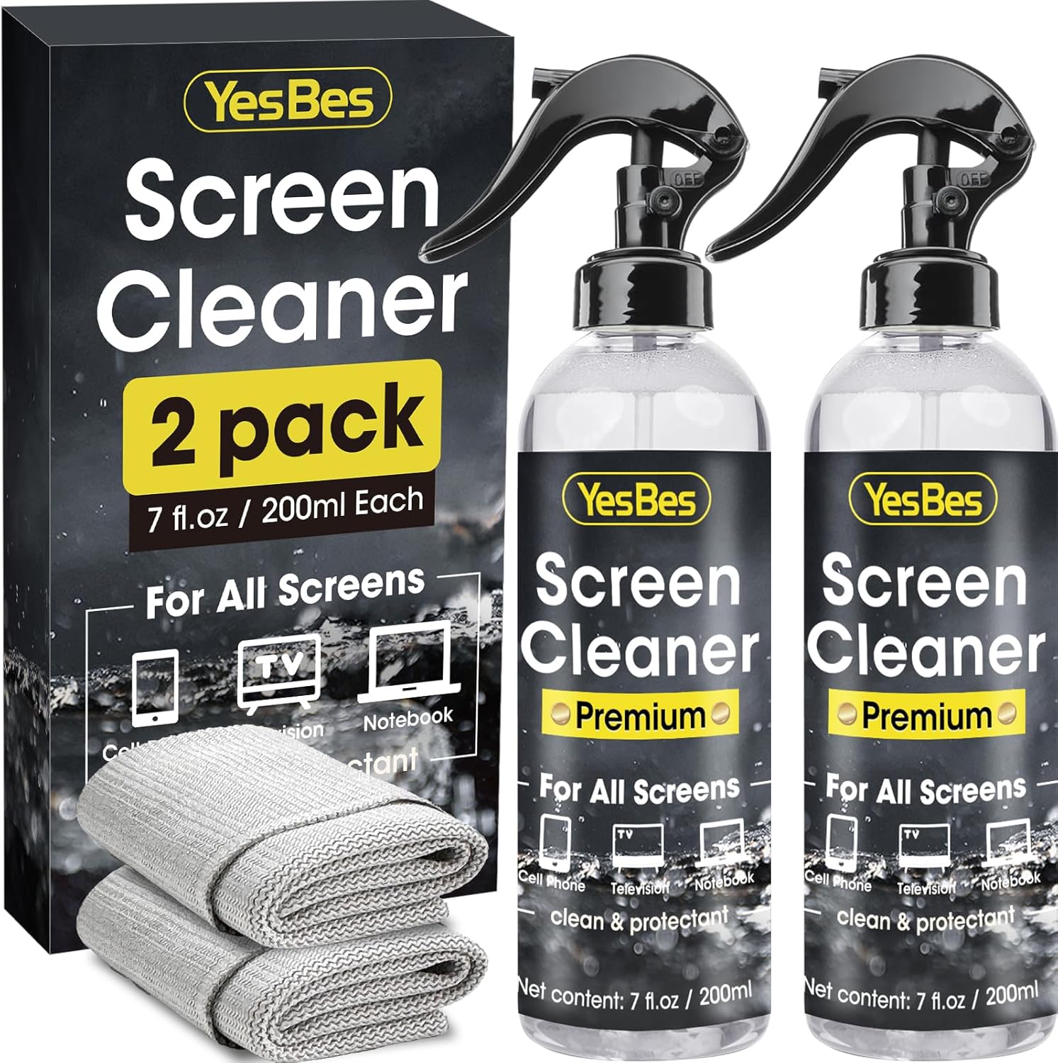 Screen Cleaner Spray 14oz (7oz x 2 Pack) - TV Screen Cleaner Spray and 2 Microfiber Cloths, Computer Screen Cleaner & Car Screen Cleaner for TV, Monitor, Laptop, MacBook, iPad and Electronic Devices