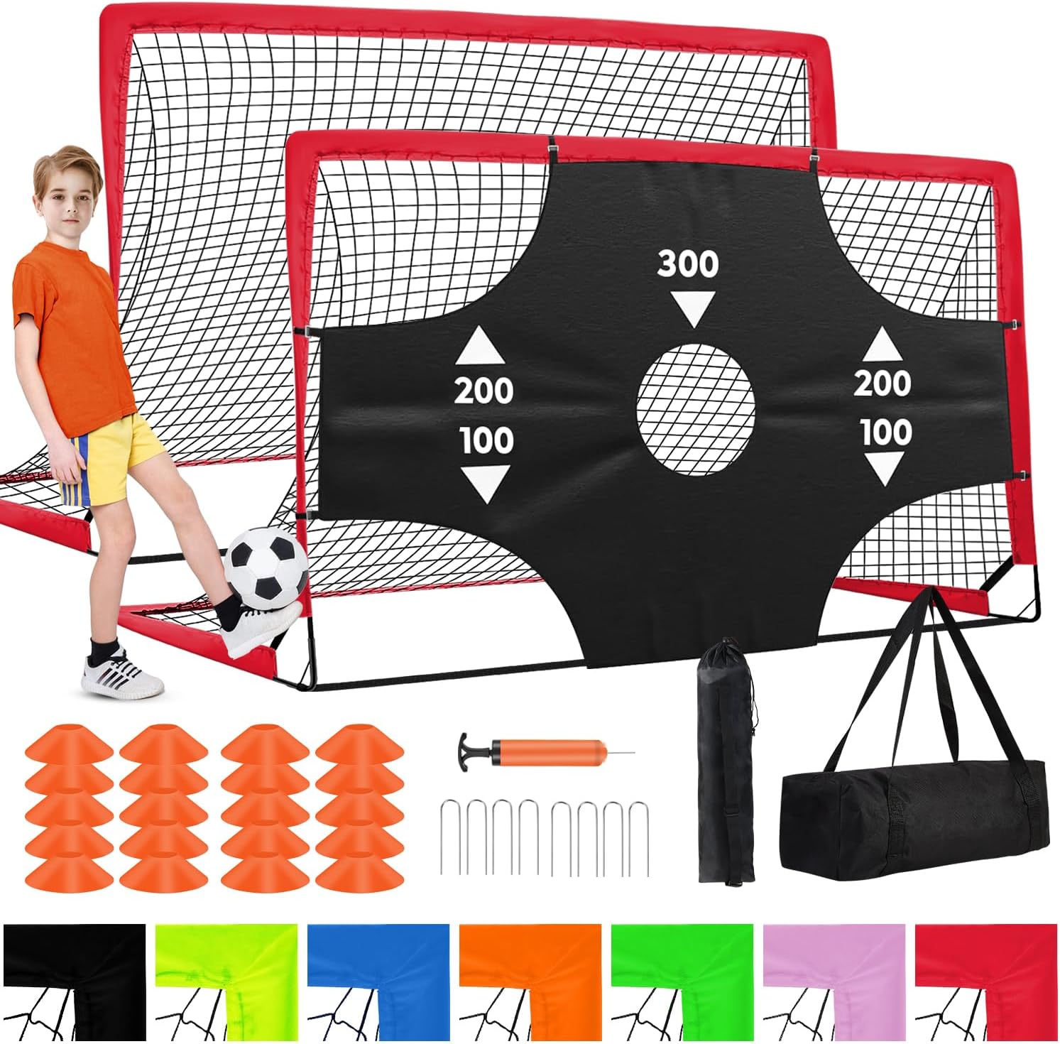 ⚽【Versatile Training Equipment】 Comes with a removable scoring target cloth and cones, allowing kids of all ages to practice their shooting accuracy and improve their soccer skills. This soccer training equipment is perfect for kids of all skill levels, from toddlers to teens.