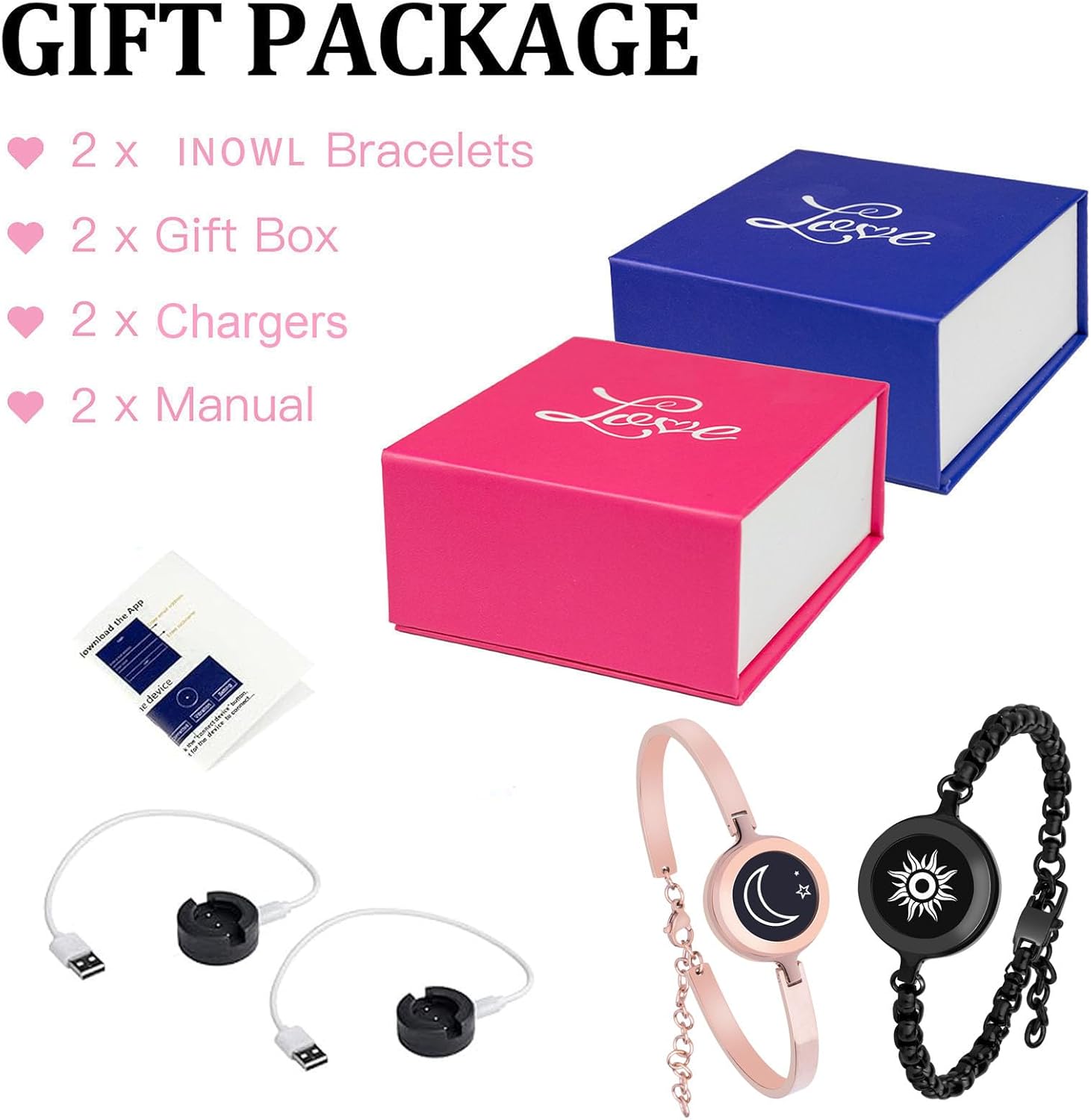 【Smart Matching Couples Bracelet】Simply tap your bracelet and your partner's bracelet will flash&Vibration, No matter how far you are from each other, you can stay in touch with them through the INOWL long distance touch bracelets, knowing you are thinking of them, You can also enjoy each other's love and thoughts of you that, always by your side, A very wonderful feeling.
