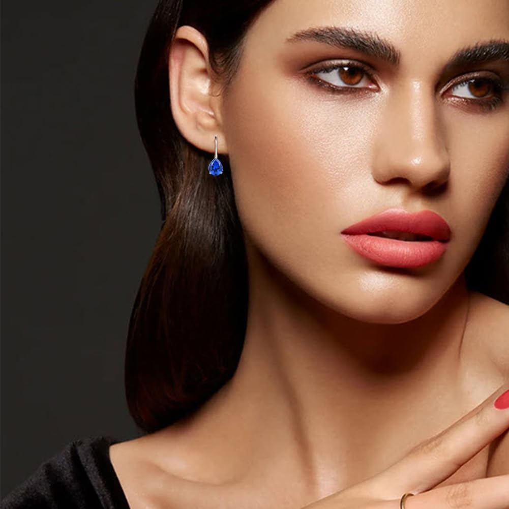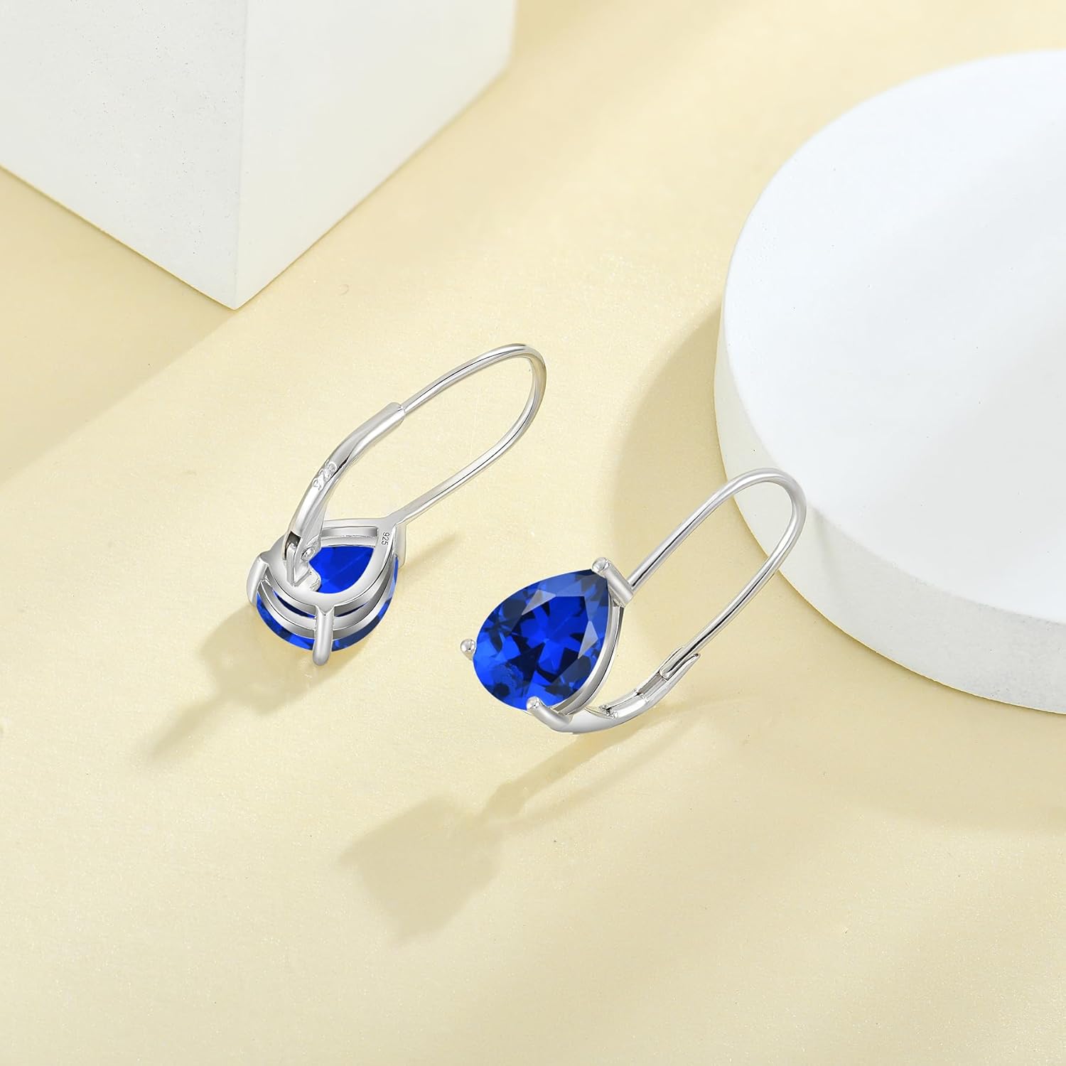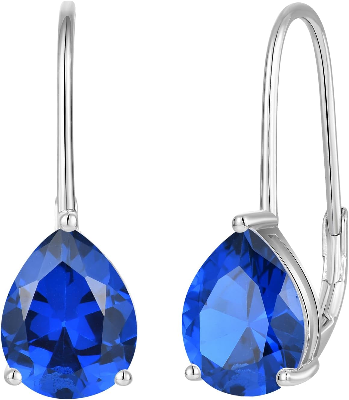 JO WISDOM Women Earrings 925 Sterling Silver 8*10mm Pear Cut Cubic Zirconia Leverback Dangle Earrings Birthstone Earrings for Women Hypoallergenic Jewelry