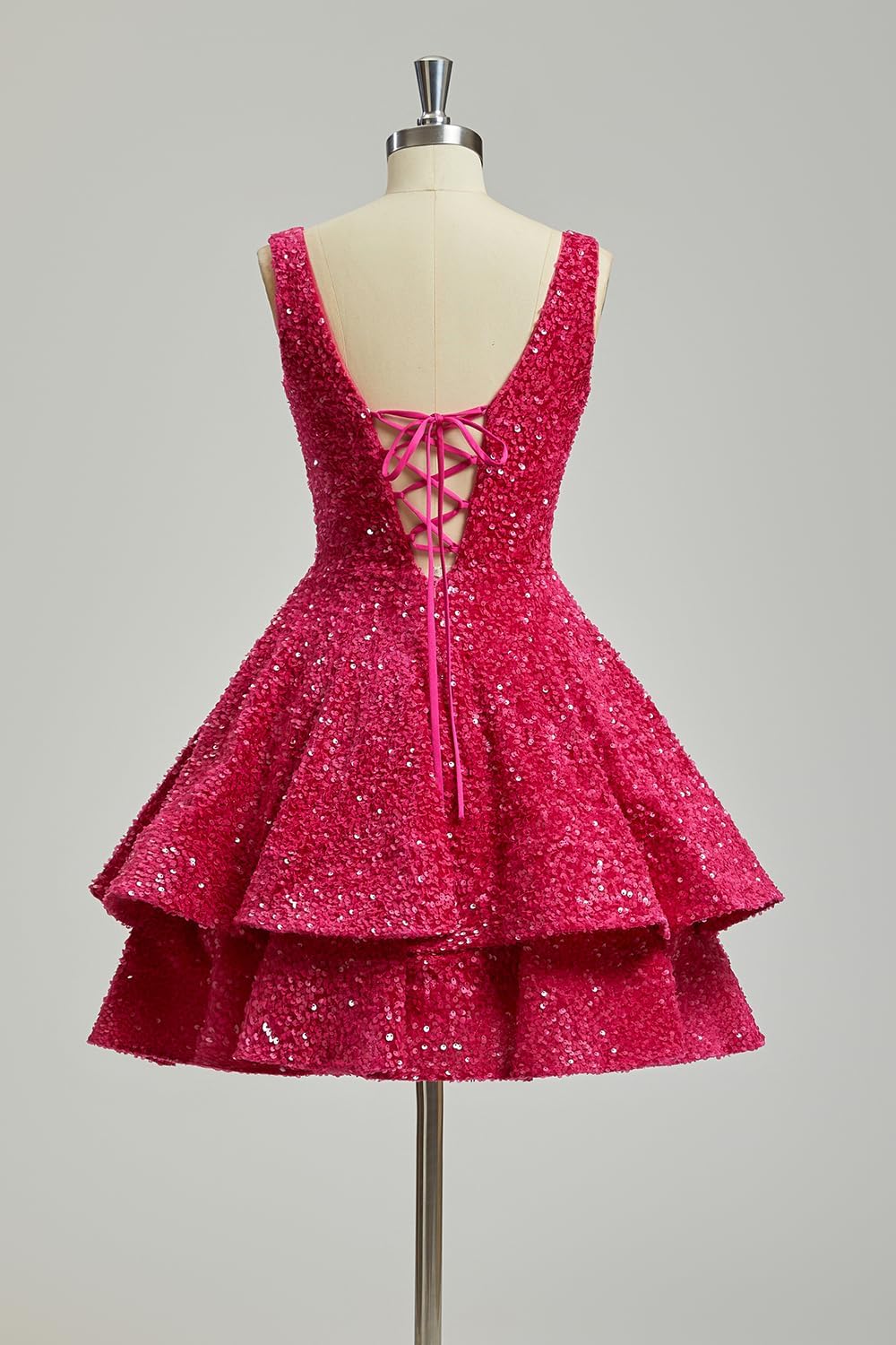 Sevintage Short 2025 Sparkly Sequin Homecoming Dress for Teen Tiered Corset Ball Prom Cocktail Party Gown