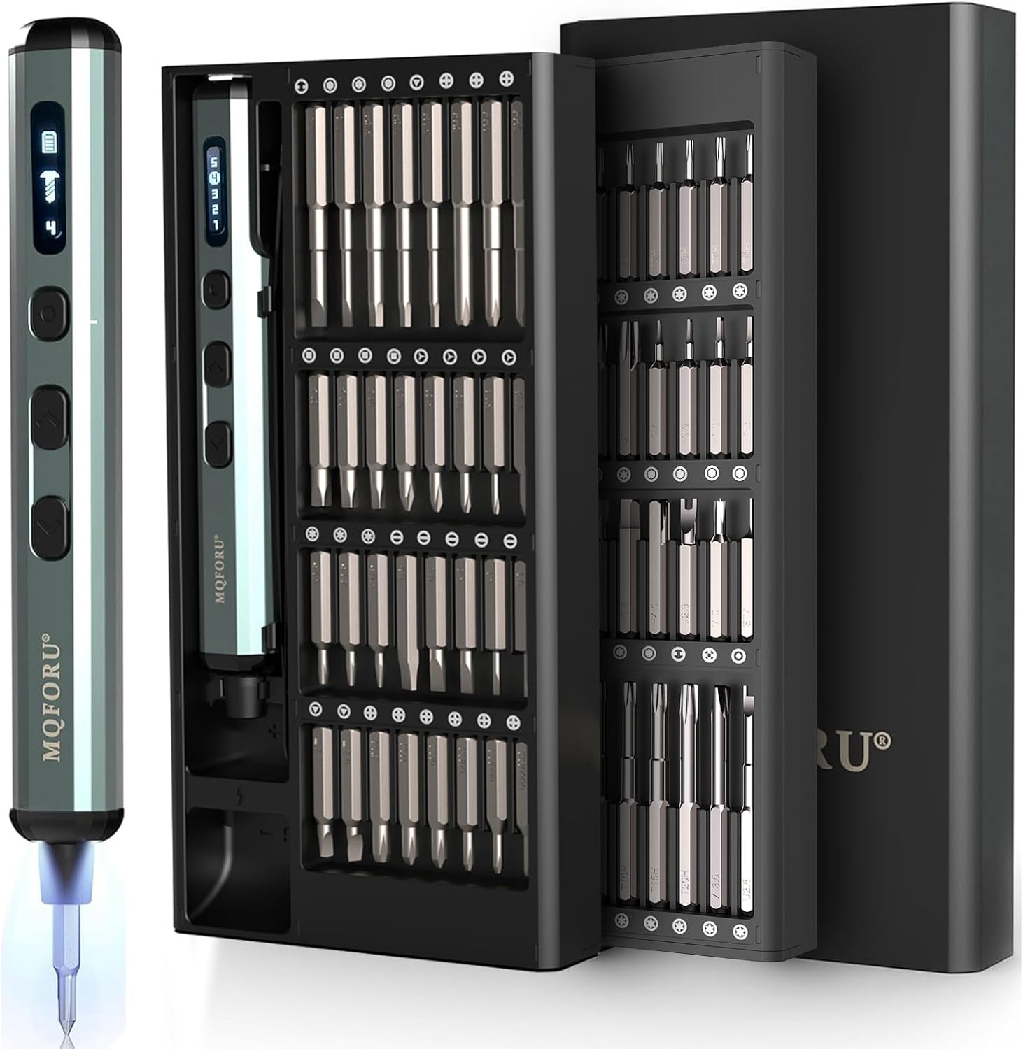 MQFORU Mini Electric Screwdriver, 72 in 1 Precision Screwdriver Kit with 64 Magnetic Bits, 5 Torque Settings,LED Screen Display, Rechargeable Power Screwdriver for Precision Work Phone Watch Camera