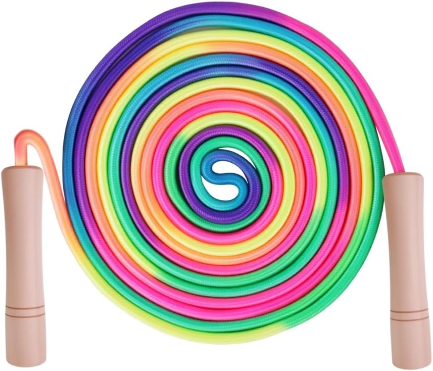 16 FT Double Dutch Jump Rope for Kids, Adjustable Rainbow Skipping Rope with Wooden Handles, Perfect for Fitness, Outdoor Fun, School Sports, and Party Games