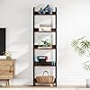 Hosfais Book Shelf Small Bookshelf: 5 Tier Wood Bookcase Industrial Bookshelf with Edge Protection Metal Narrow Bookcase Storage Organizer Display Rack for Bedroom Home Office, Vintage Brown
