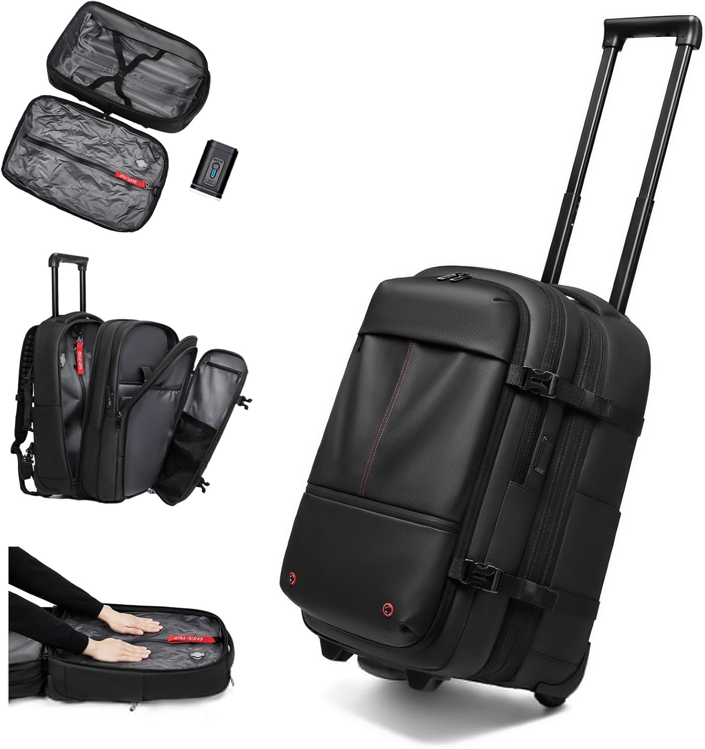 Equipaje de Mano de 21" con Bolsa de Sellado al Vacío, Mochila Vacpack con Ruedas, Maleta de Aire con Puerto USB, Bomba, Candado