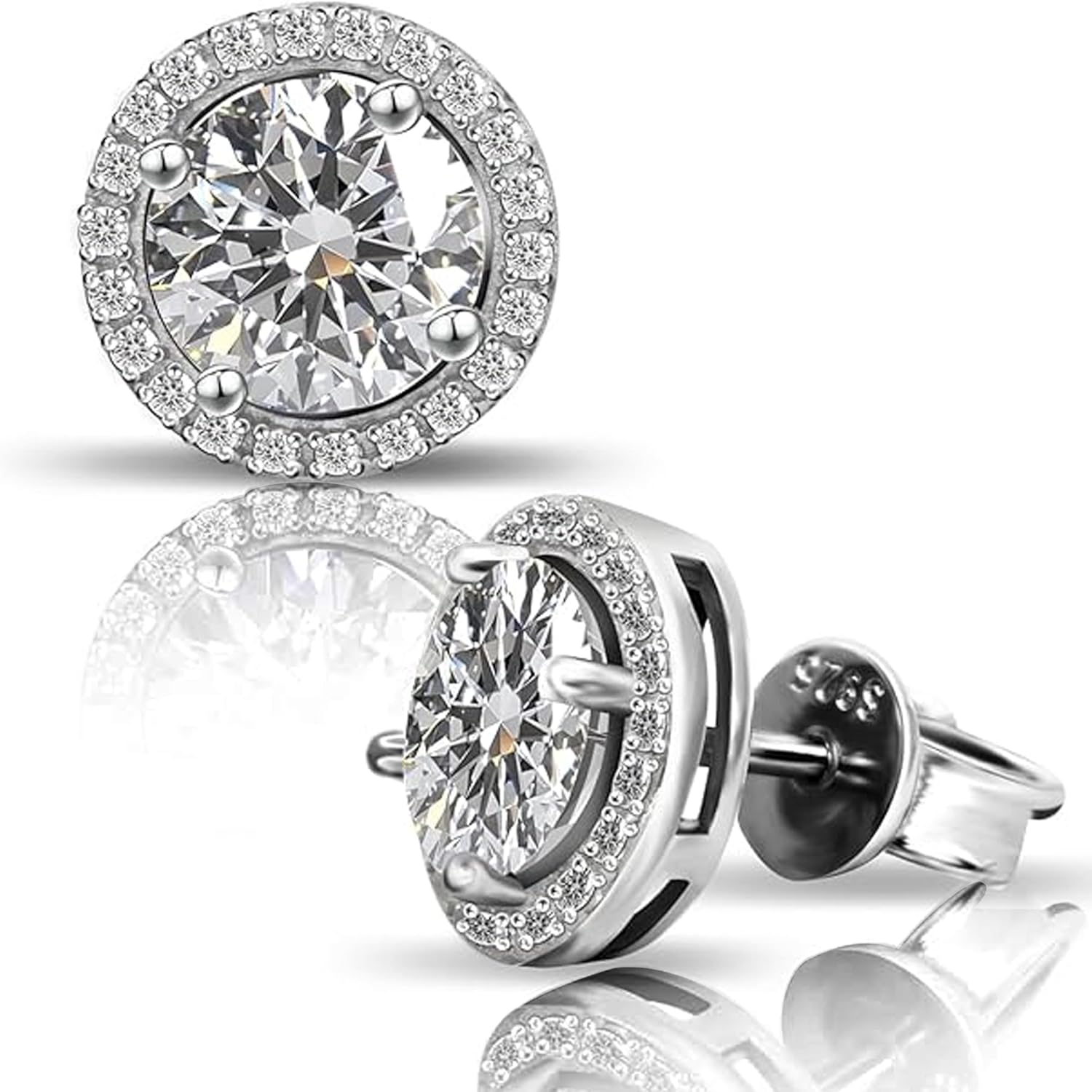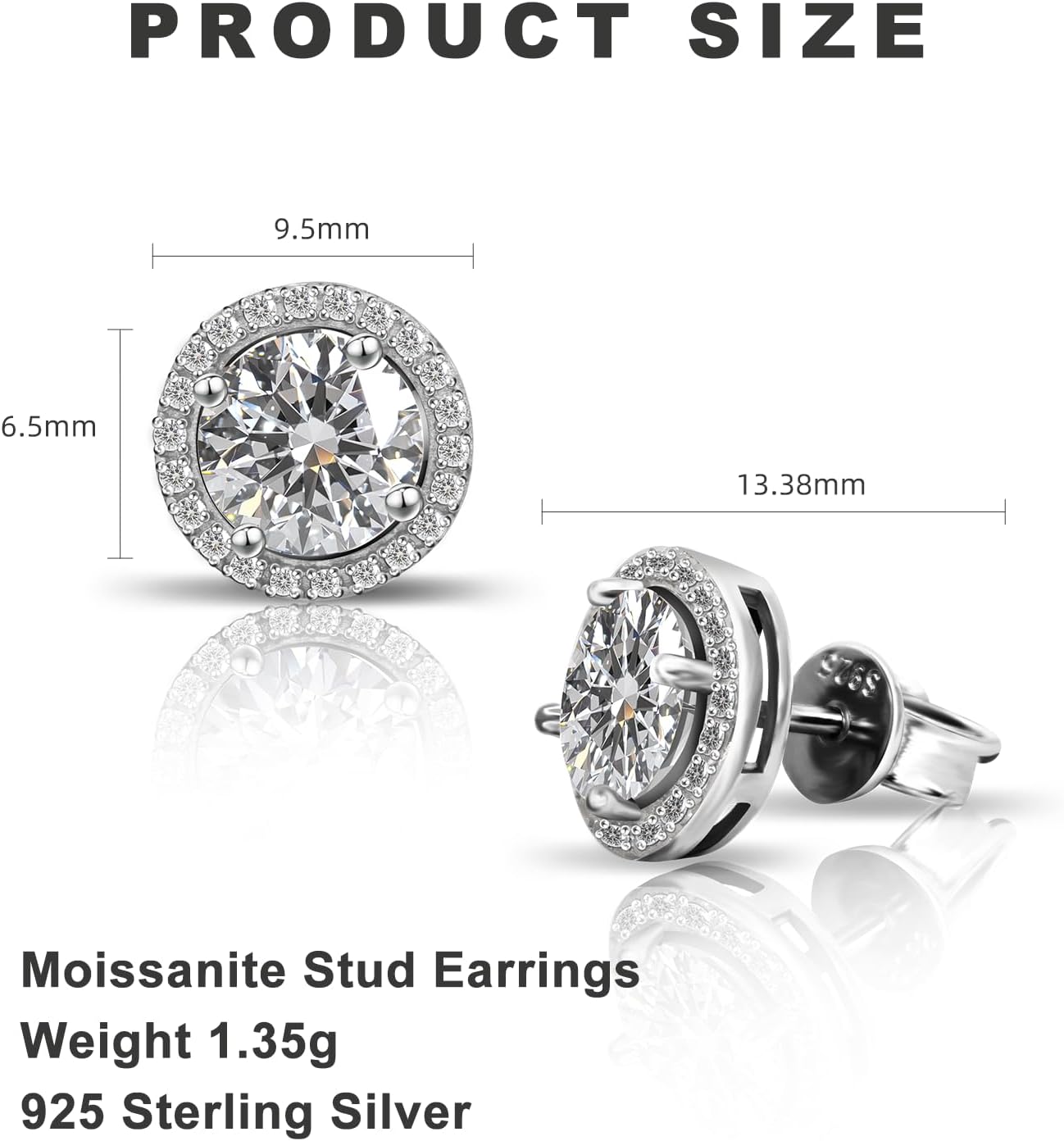 Moissanite Stud Earrings, VVSI Quality D Color Round Cut, Lab Created 925 Sterling Silver with 18K White Gold Plated, Double Halo Design – Idea Gift for Women Men