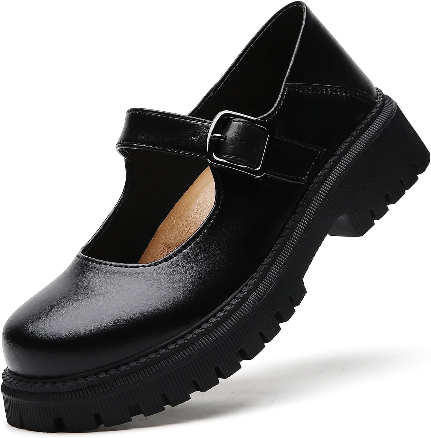 XMM Mary Jane Shoes Platform Chunky Mary Janes for Women Ladies Comfort Leather Round Toe Non-Slip Dressy Casual Cute Girls School Work Shoes