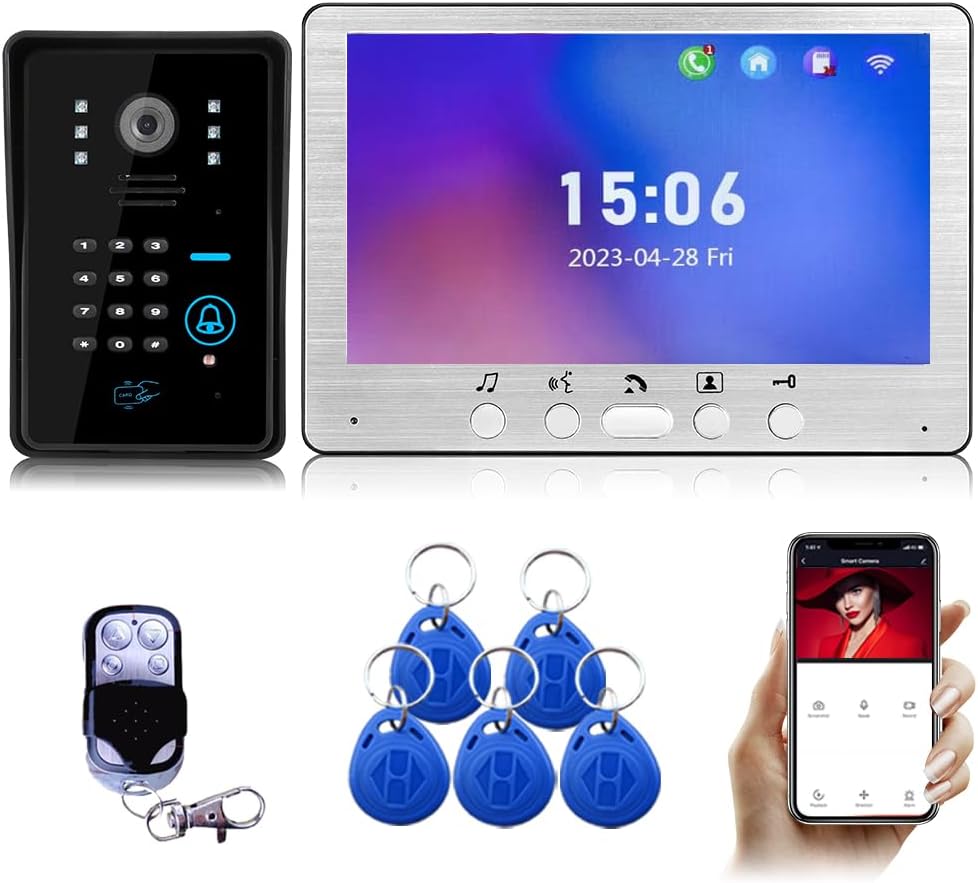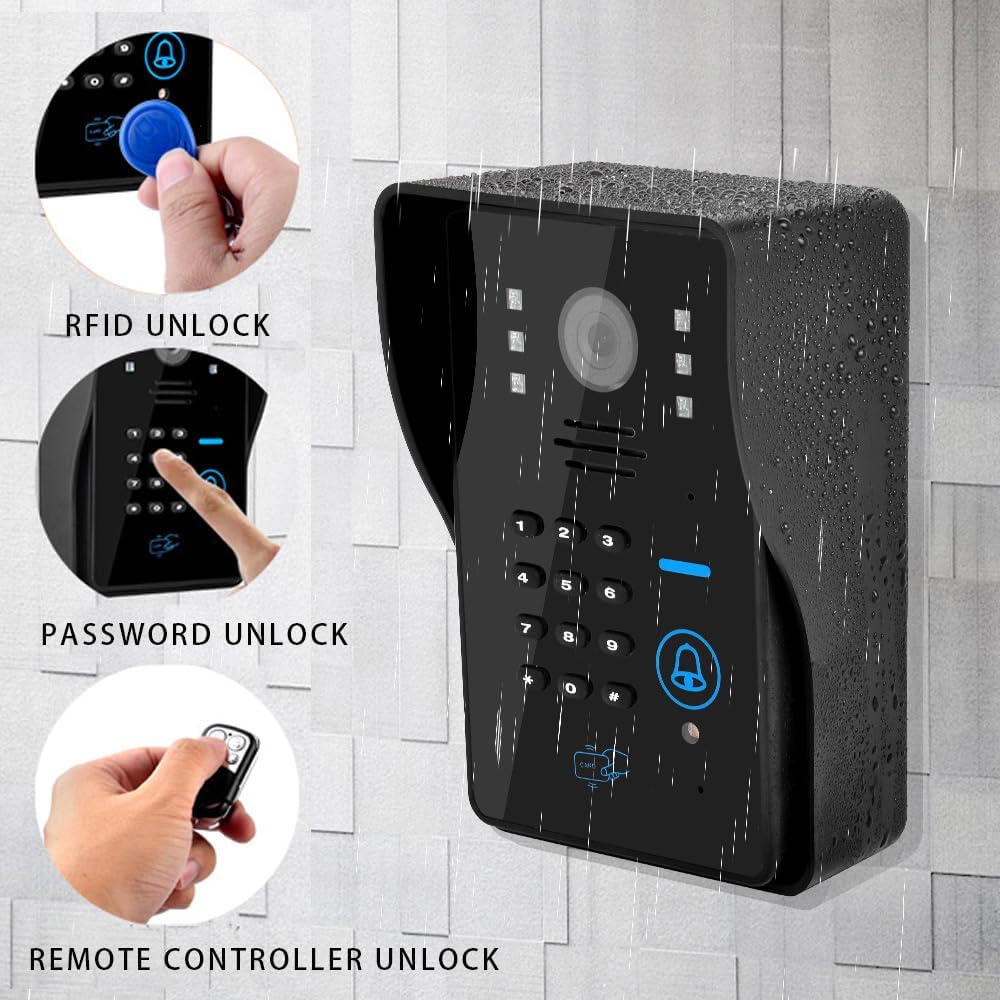 Generic 7 inch Home Intercom System Video Door Phone Record Video Doorbell Waterproof 1080p Camera with RFID Password Unlock IR Night Vision, 703MJIDS11