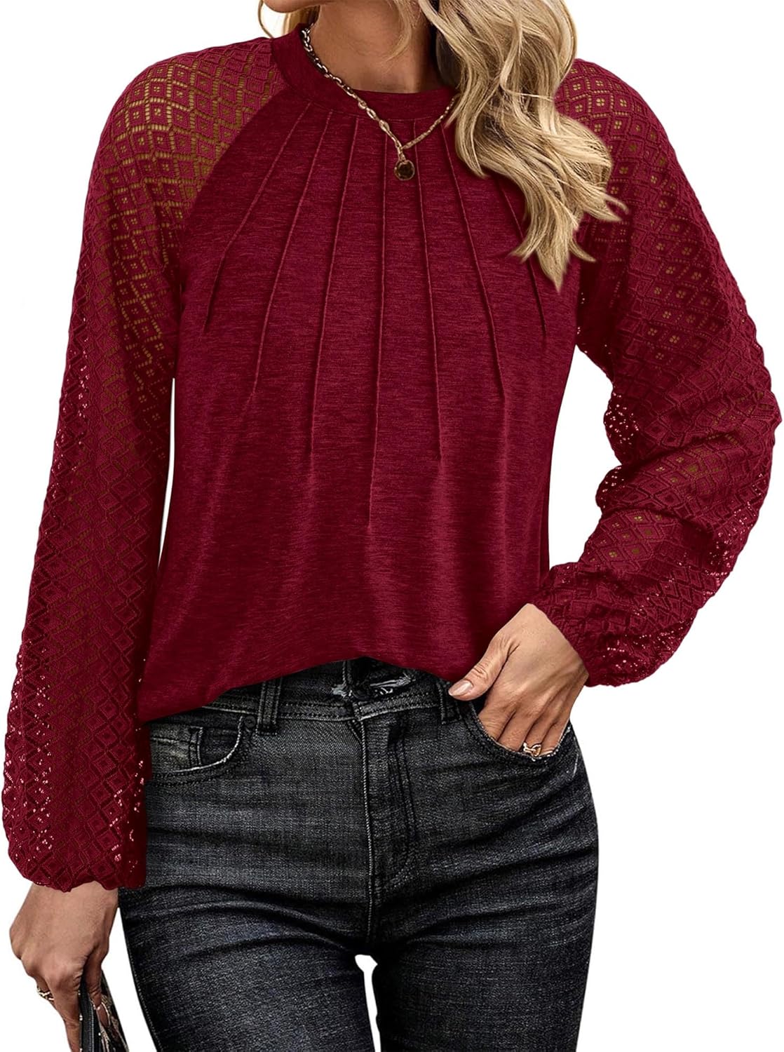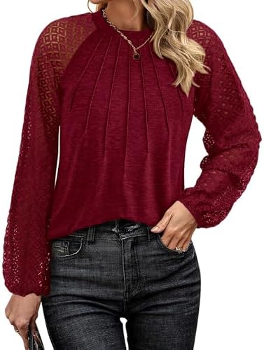KIRUNDO Womens Tops 2025 Trendy Spring Lace Long Sleeve Dressy Casual Blouses Pleated Business Work Shirts Clothing