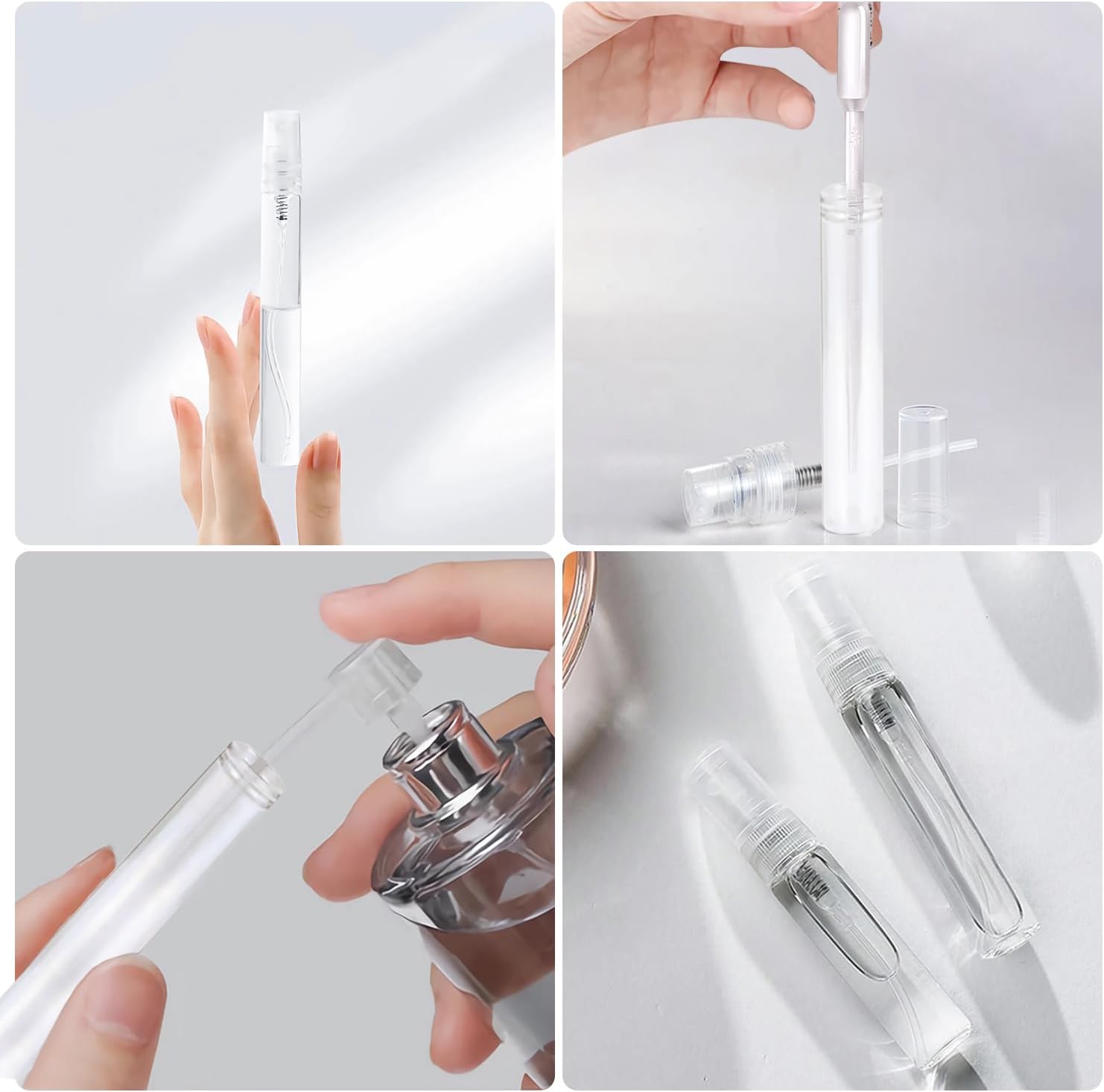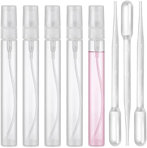 SPRAY BOTTLES SET - 5 pcs 10ml mini spray bottles, 3 pcs Transfer Pipettes. This spray bottles is easy to fill using a pipette, and after filling the liquid, press the top down firmly to fasten it