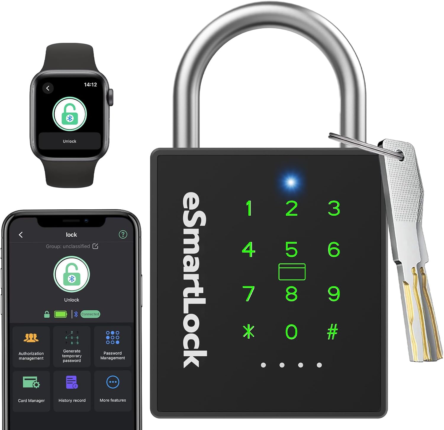 Combination Lock Outdoor eLinkSmart Password Padlock with Key NFC RFID Weatherproof Heavy Duty Padlock for Locker Shed Gate Fence Truck Support Temporary Code Unlock Record