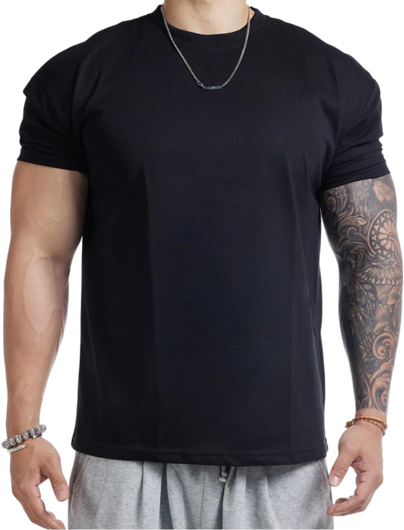 Men's Athletic Fit Muscle Anti-Wrinkle Workout T-Shirt, Structured Shoulder Pads for Enhanced Muscle Definition