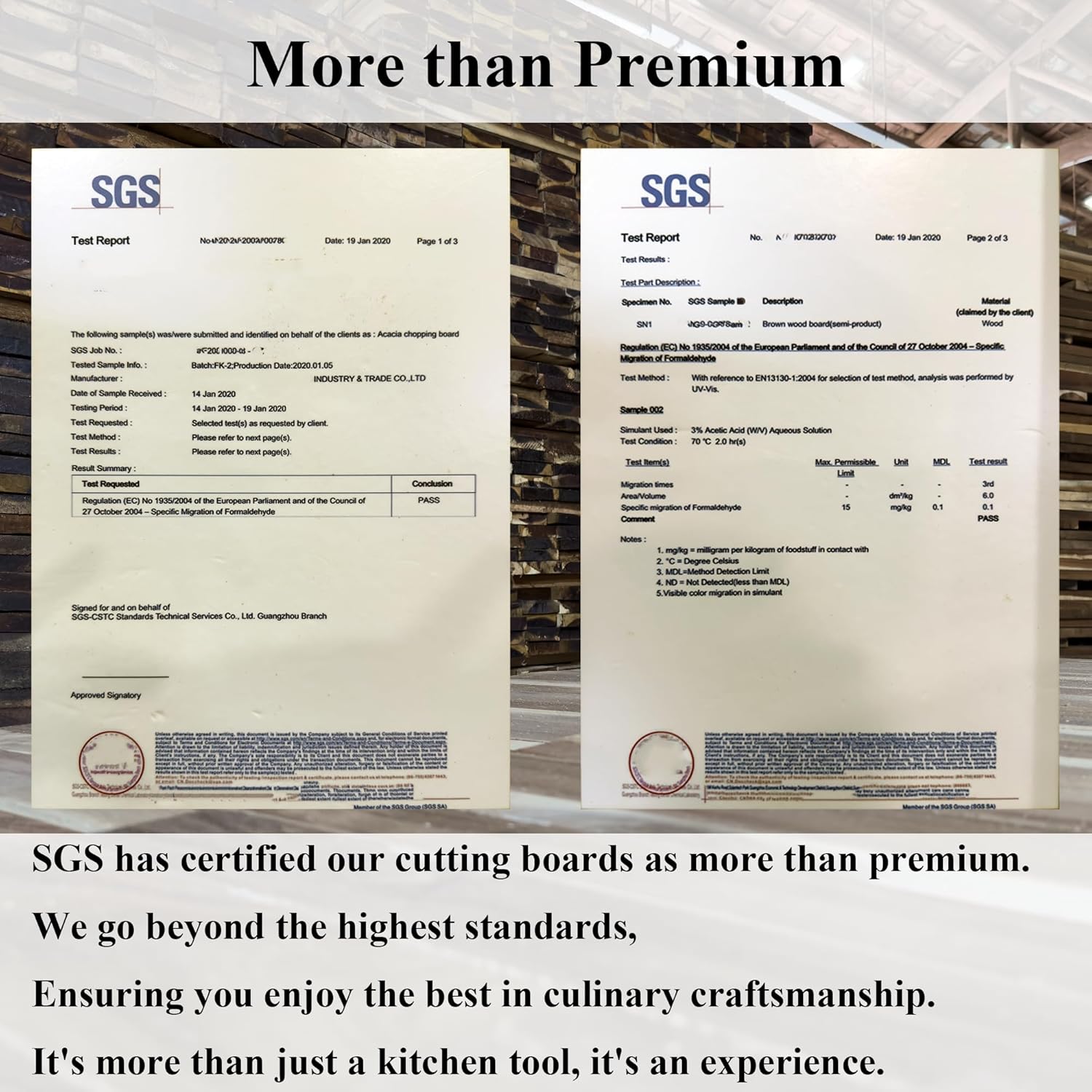 【Premium Acacia Wood】: Expertly hewn from solid Acacia wood, prized for its exceptional stability and resilience. This cutting board is designed to withstand the rigors of everyday use without leaving unsightly scars, ensuring a durable and safe platform for your culinary endeavors. Its natural texture provides excellent friction, preventing slipping and sliding during food preparation.