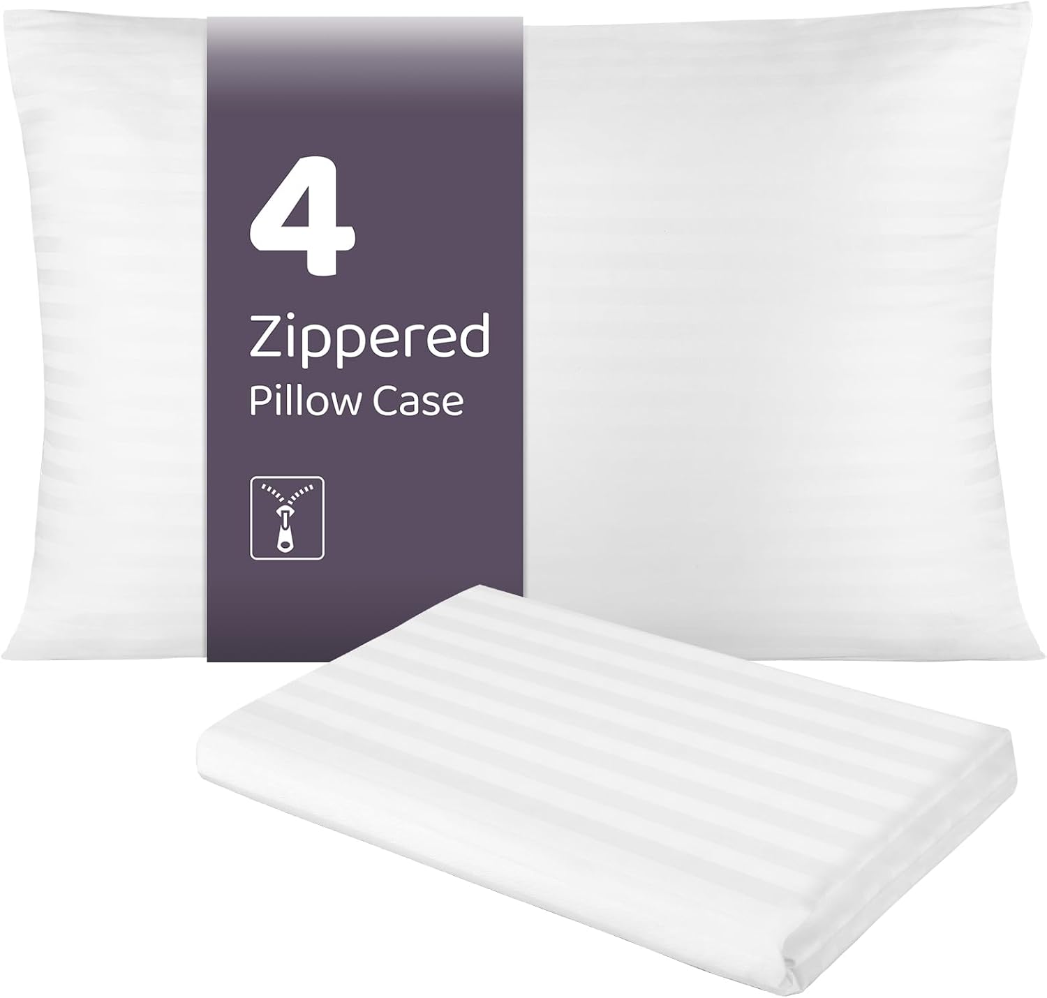 100% Cotton Pillow Case Protector with Zipper, Queen Size (20x30), 4 Pack, Long-Staple Sateen Soft Comfortable, Hotel Grade Bed Pillow Covers, White, Oeko-TEX Certified
