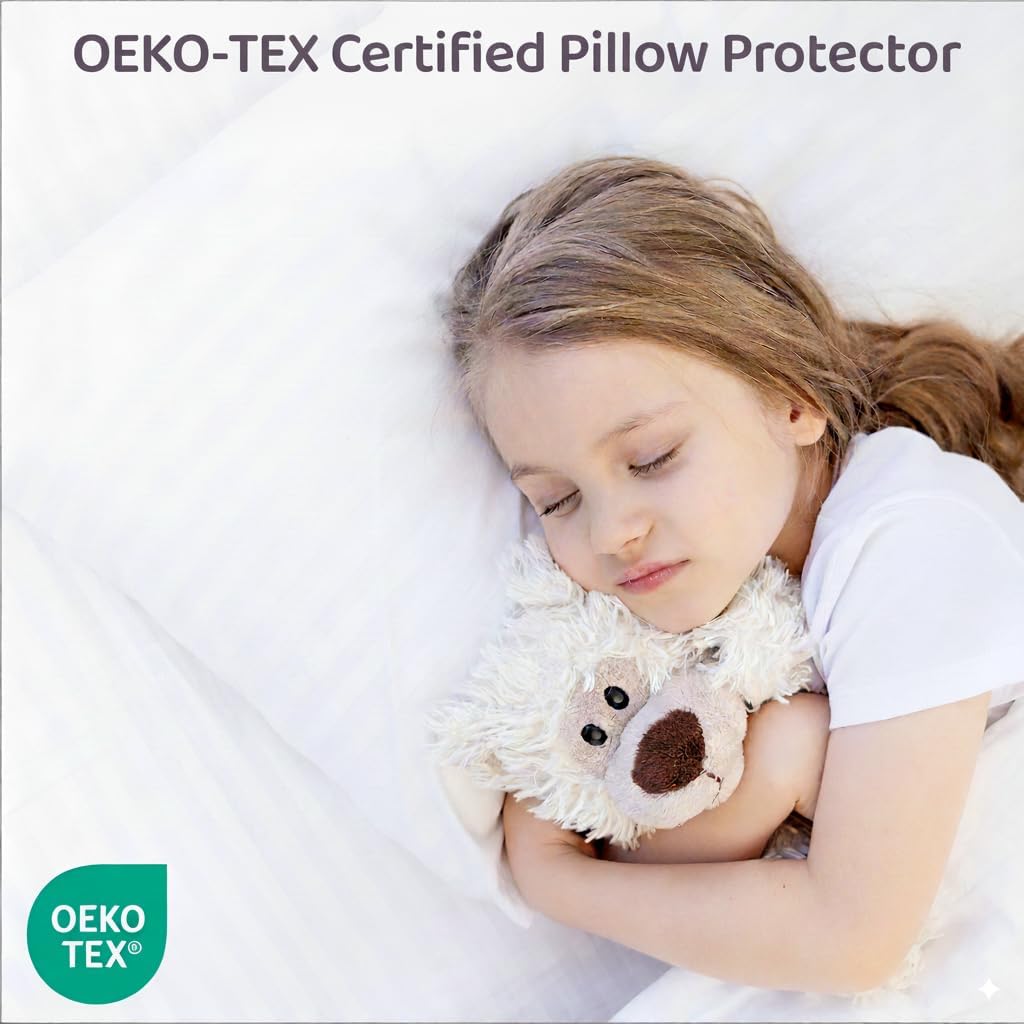 Ethically Made & OEKO-TEX Certified: Our pillow protectors are made in a family-owned facility with over 10 years of expertise, ensuring the highest standards of quality and sustainability. OEKO-TEX 100 certified, these protectors are safe, skin-friendly, and ethically produced to ensure a healthy sleeping environment for you and your loved ones.