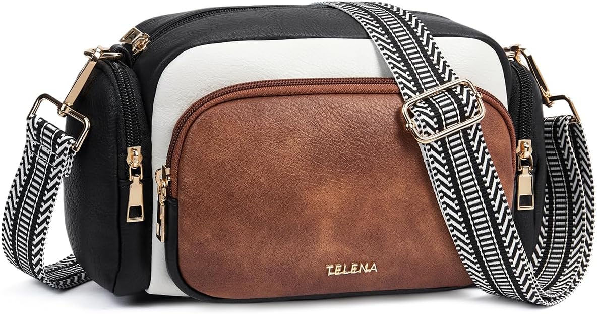 Telena Crossbody Bags for Women Vegan Leather Purse Multi Pocket Camera Bag with Adjustable Shoulder Strap
