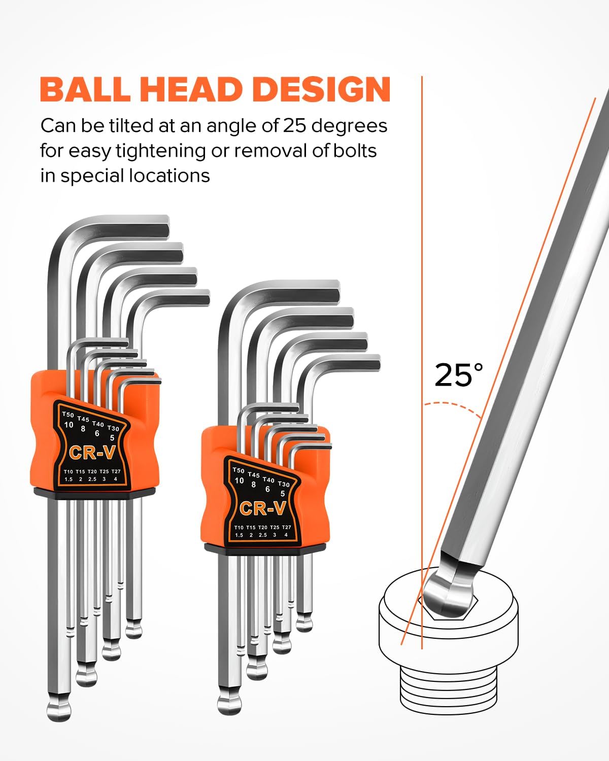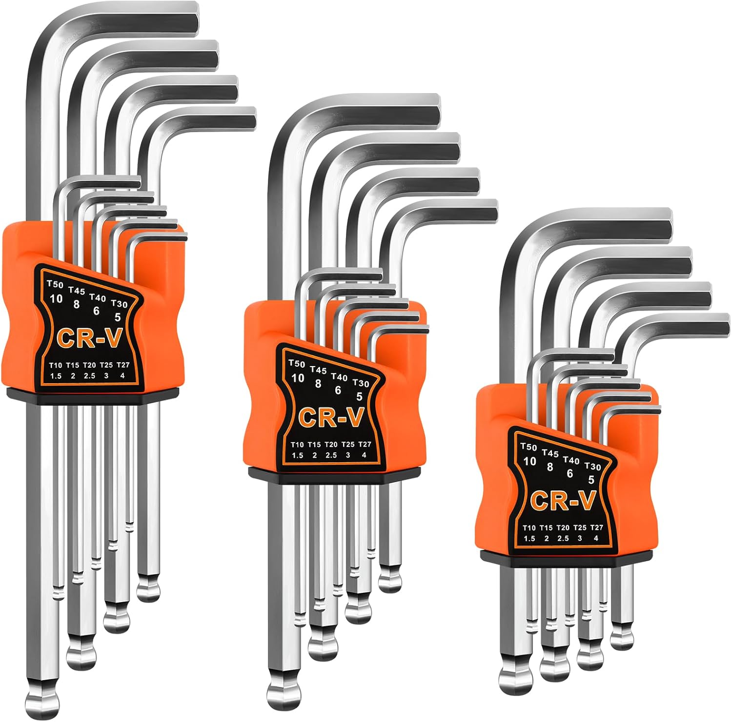 27pcs Allen Wrench Set - Long Arm SAE & Metric Torx Star Ball End Hex Key Set