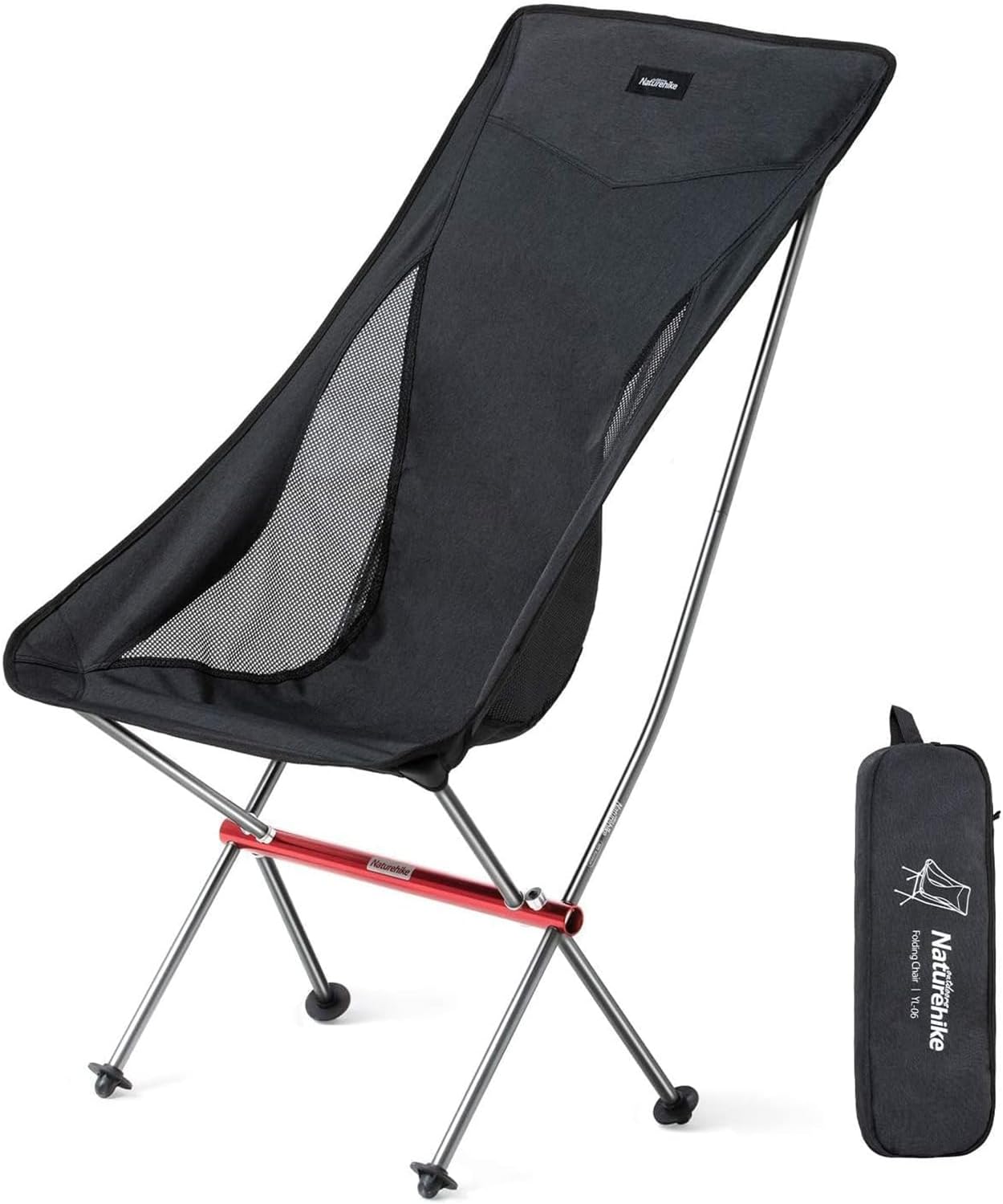 Naturehike Camping Chair, Foldable Chair with Storage Bag, Outdoor Portable Chair for Adults, Lightweight, Supports 330lbs, Backpacking Chair for Fishing, Hiking, Beach, Lawn