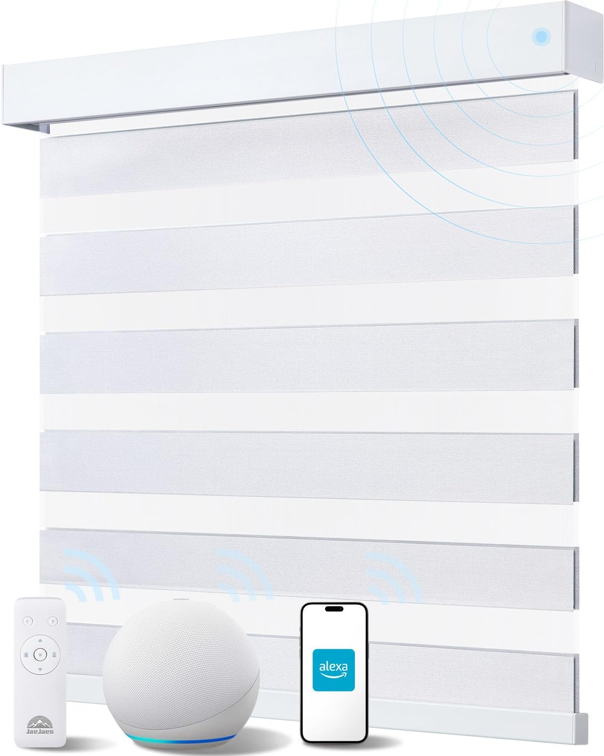 Smart Zebra Blinds for Windows, Alexa Motorized Zebra Shades with Remote Control, Automatic Electric Power Roller Blinds for Indoor Windows (23" W X 72" H, White)