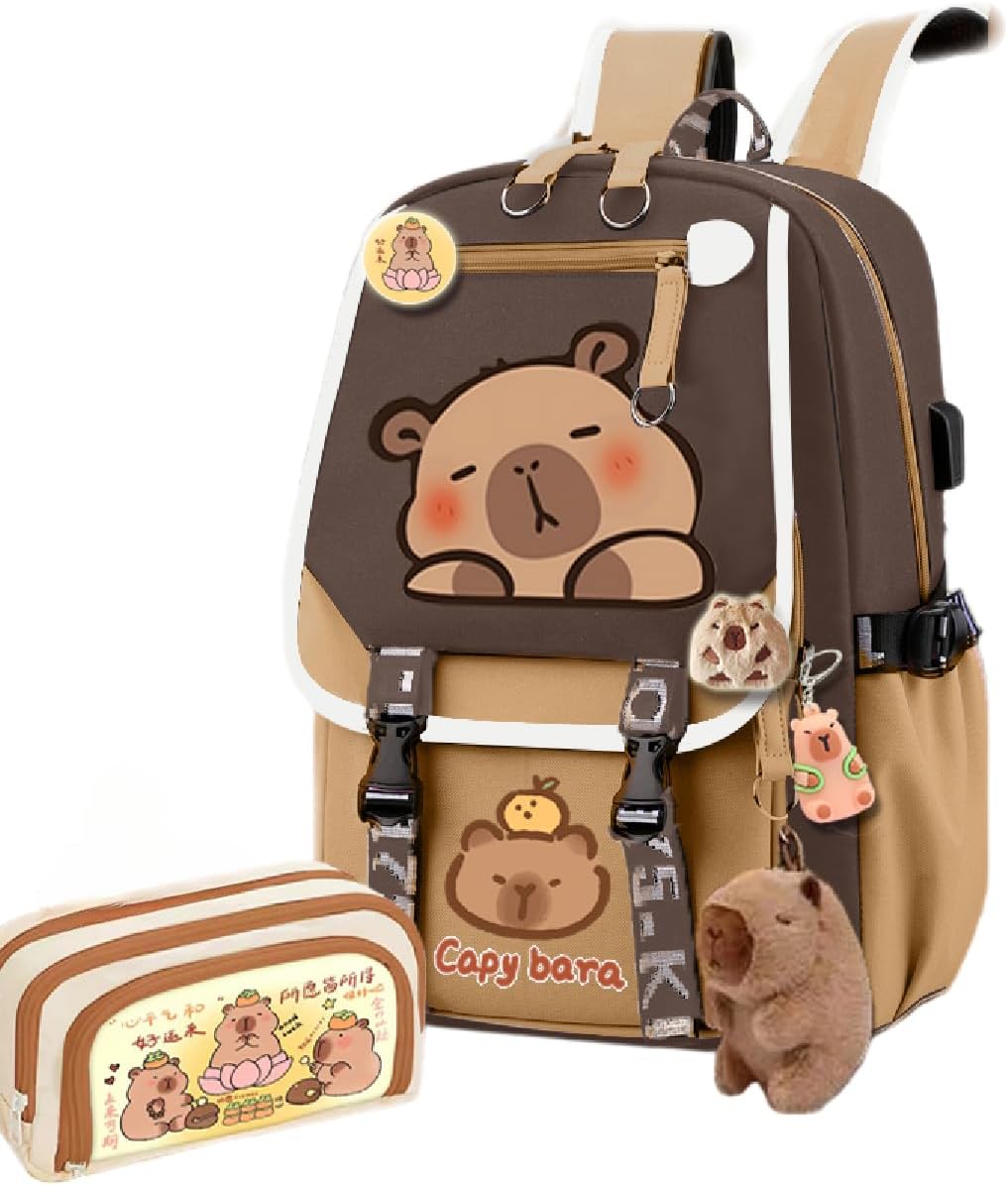 Bonito colgante de peluche de Kapibara: Cada mochila viene con un peluche de Kapibara para colgar, añadiendo un toque de fantasía a tu bolsa.
