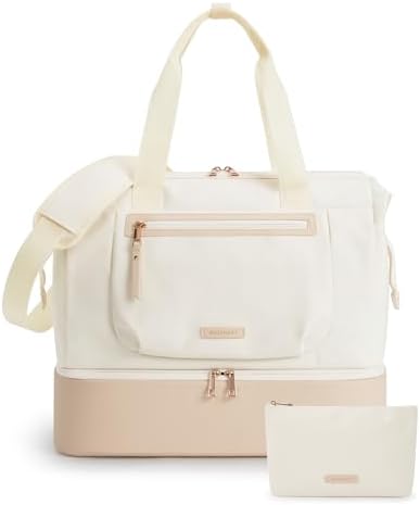BAGSMART Weekender Bag for Women - 35L Carry On with Bags, TSA-Free Travel Duffle, Large Overnight Hospital Bag, Beige