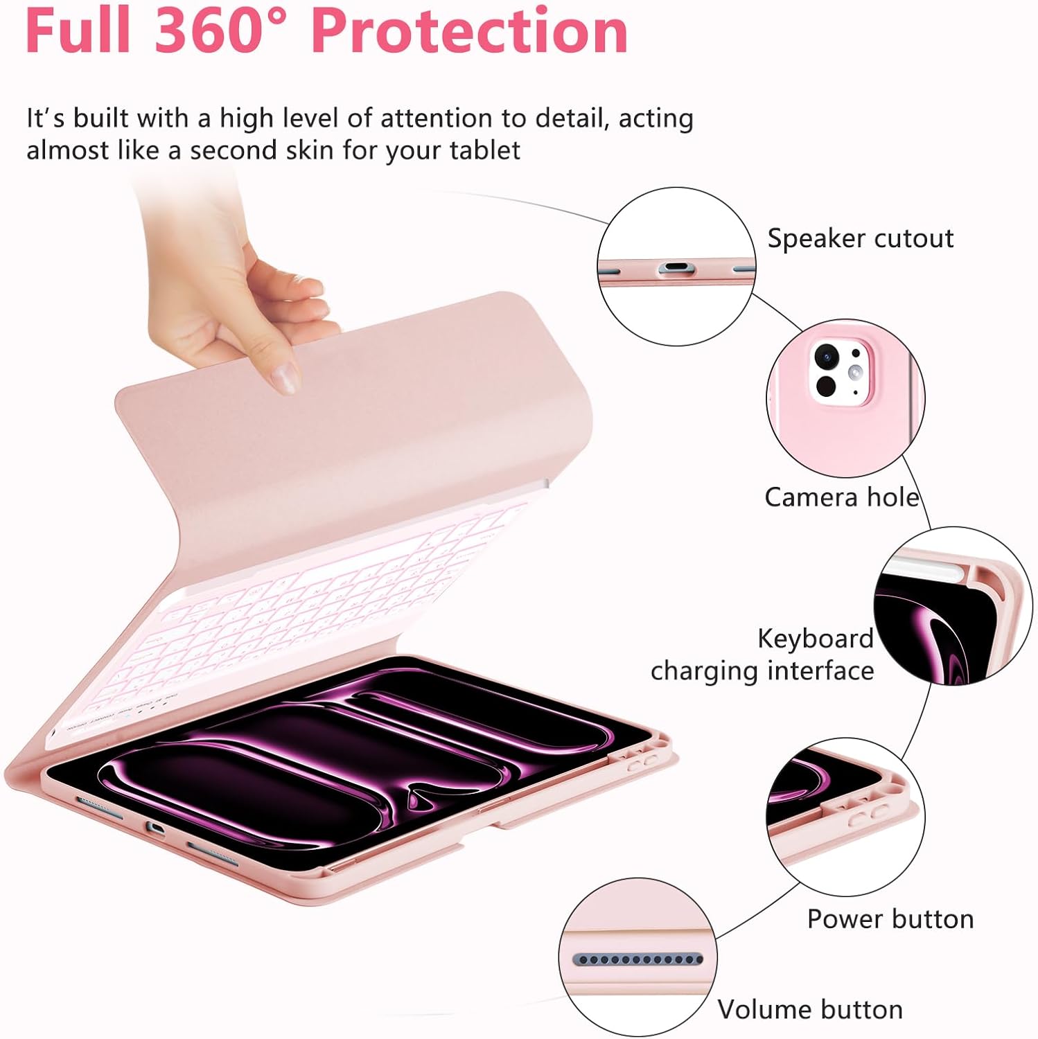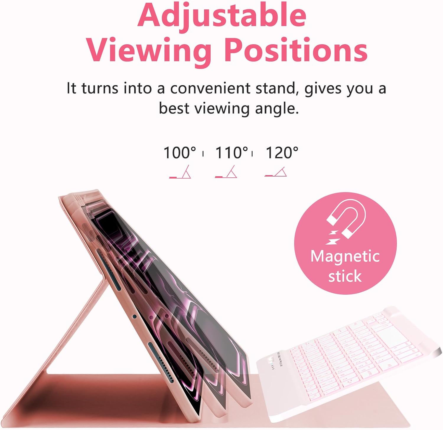 【SHOW YOUR STYLE】: This charming pink iPad 11 Pro case with keyboard enhances your tech style with a sweet, modern aesthetic. The refined matte finish resists fingerprints while adding a touch of delicate luxury, providing durable protection that keeps your iPad looking fresh with timeless elegance.