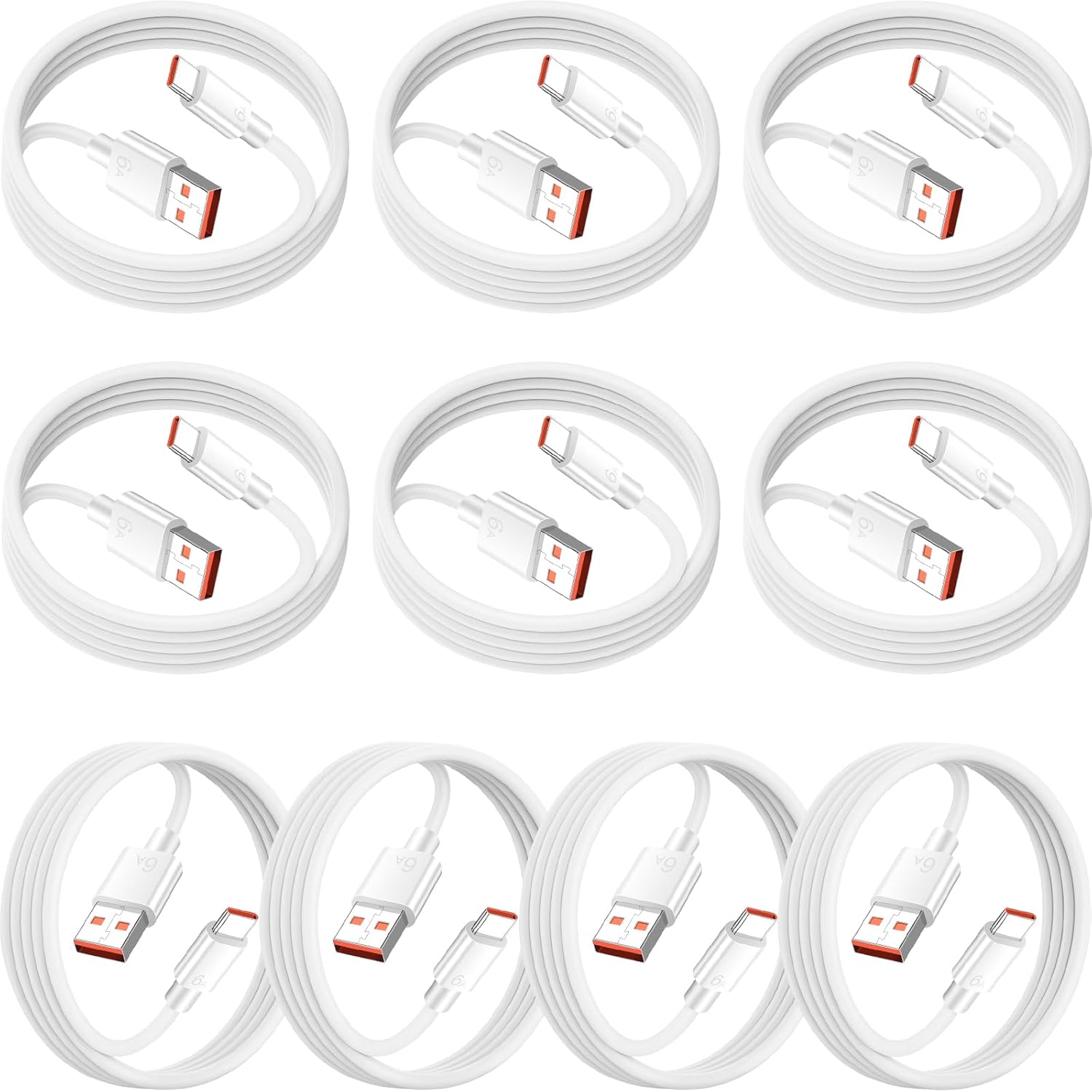 USB C Cable 3.3ft 10-Pack USB A to USB C Charger Cord 66W 6A Type C Fast Charging Compatible with Huawei Mate 60/50/40,P60/50 Pro,Mate RS,Mate X5,Nova 11/10/9,White