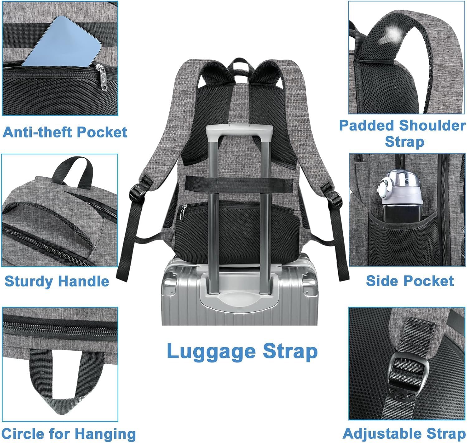MATEIN Work Backpack for Men, Large Anti Theft Lunch Backpack with Laptop Compartment, TSA Friendly Travel Carry On Flight Approved, Lightweight College Bag for Camping Hiking, Grey