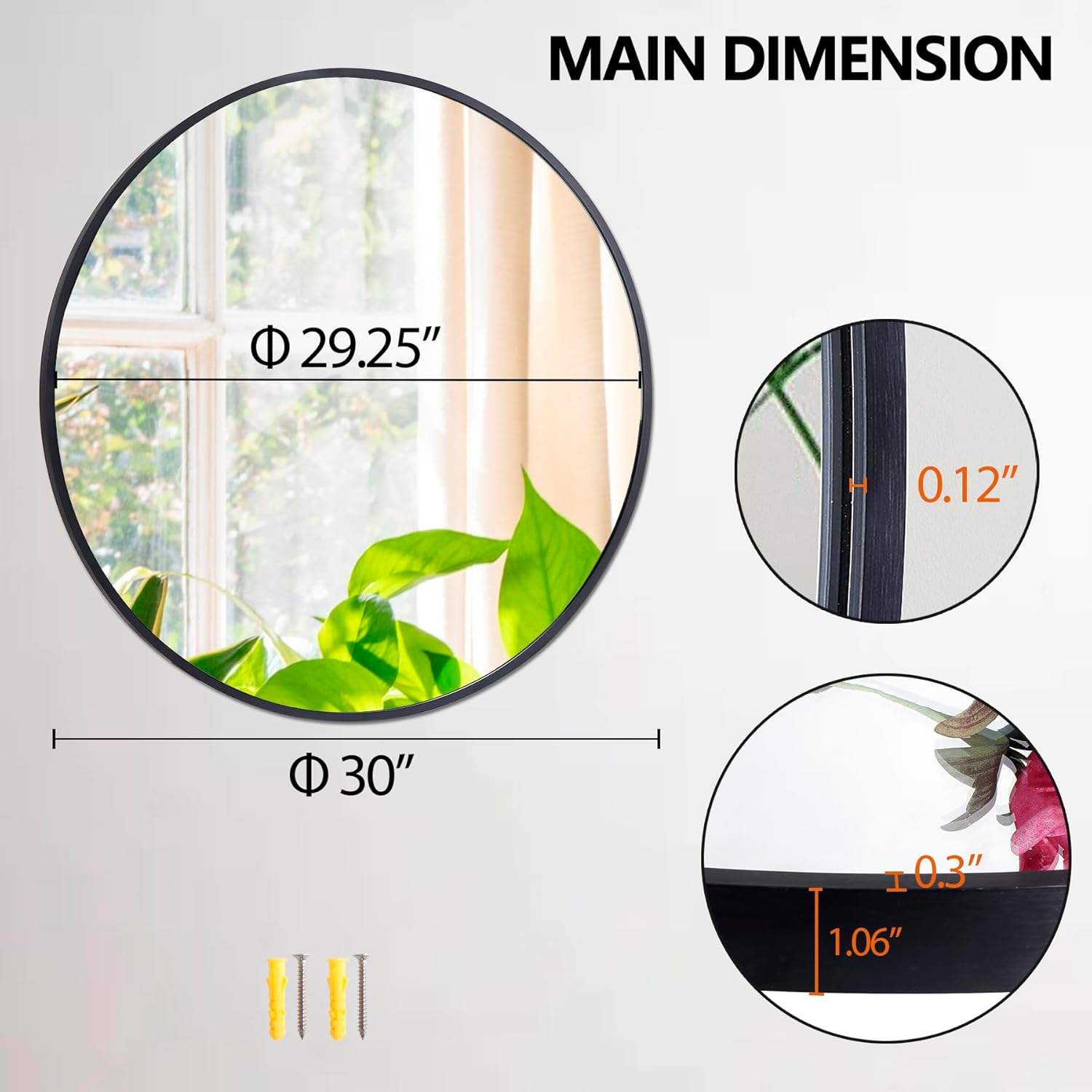Smartxchoices 30 Inch Round Mirror, Metal Frame Wall Mirror Mounted Circle Mirrors, Vanity Mirror Modern Minimalist Wall Décor for Entryway, Bathroom, Washrooms, Living Rooms, Bedrooms