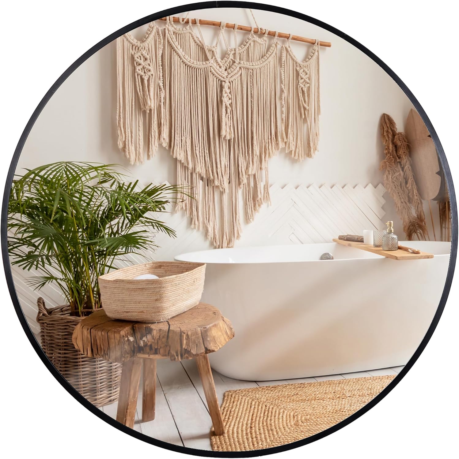 Smartxchoices 30 Inch Round Mirror, Metal Frame Wall Mirror Mounted Circle Mirrors, Vanity Mirror Modern Minimalist Wall Décor for Entryway, Bathroom, Washrooms, Living Rooms, Bedrooms