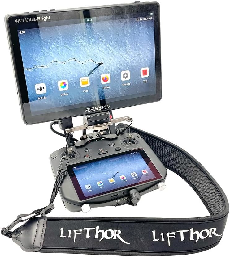 Upgrade your ground station with the LifThor RC Pro Utility Mount, a professional aluminium bracket compatible with the DJI RC Pro controller. Engineered and CNC-machined in Norway, this versatile mount delivers the strength and stability needed for long flight sessions, cinematic filming, and live streaming. The included LifThor AXE Lanyard System and StrapThor ACE professional strap provide superior weight distribution, keeping your setup balanced and comfortable. Attach external HDMI monitors for a direct camera feed, or add smartphones and tablets (with an additional clamp) to create a custom multi-screen display. The solid aluminium frame and integrated quick-release bracket ensure wobble-free operation whether mounted on a tripod or used hand-held. **Compatibility Note: Not designed for the DJI RC Pro 2. For that controller, see the dedicated LifThor SAGA model.