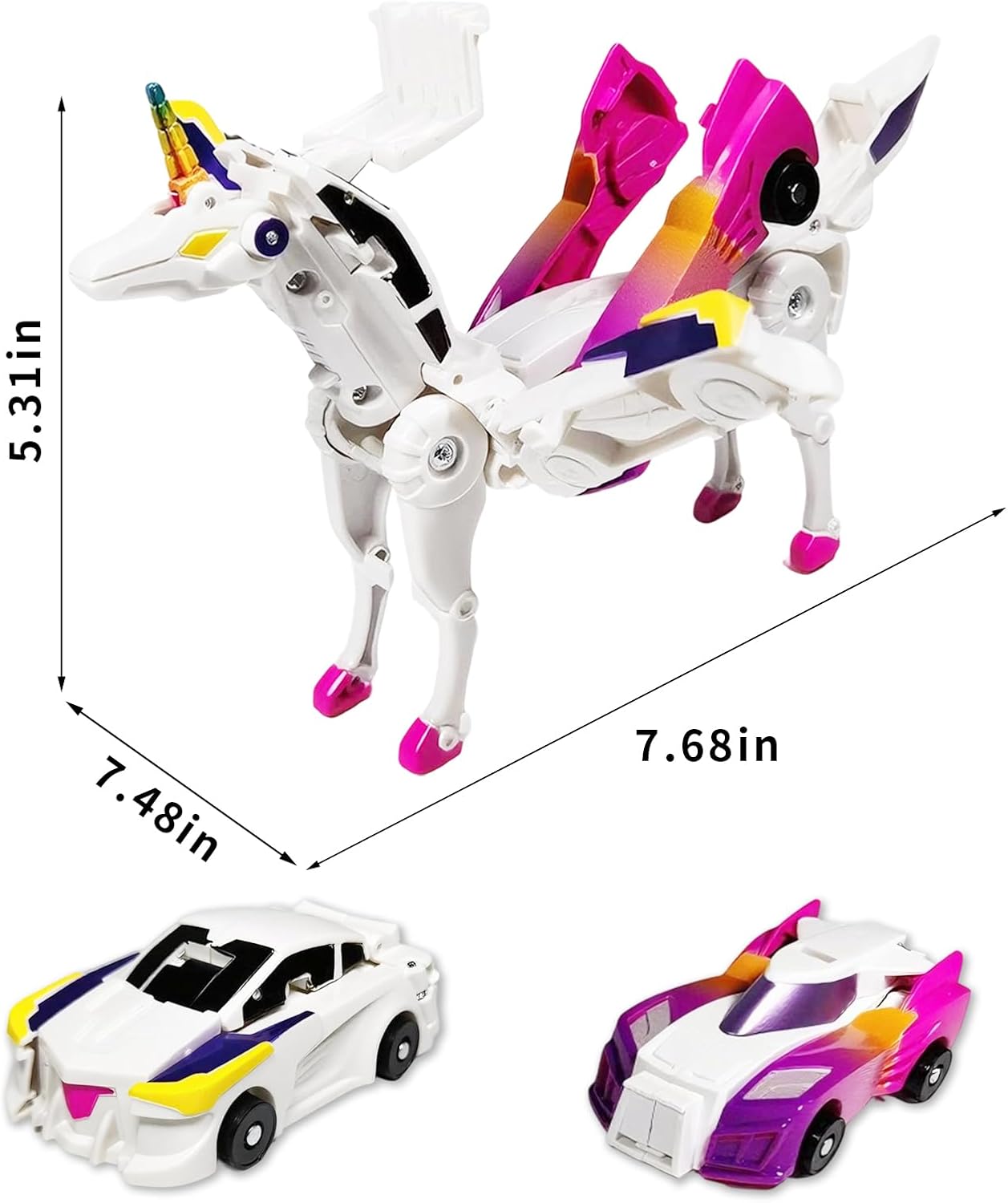 Versatile Gift: Perfect for birthdays or any occasion, these transforming unicorn car toys delight both boys and girls with their magical transformations.