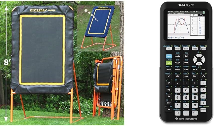 The EZ Goal Professional Folding Lacrosse Throwback Rebounder and Texas Instruments TI-84 Plus CE Color Graphing Calculator bundle offers a great combination of sports training equipment and an advanced graphing calculator. The EZ Goal rebounder features an 8-foot tall steel frame with a 6 by 8-foot UV-protected mat that allows you to practice lacrosse shots from various angles. Its sturdy 1.5-inch thick, 17 gauge steel construction with rounded corners and a folding design makes storage easy. Complementing the rebounder, the TI-84 Plus CE graphing calculator has a high-resolution, full-color backlit display with interactive zoom features, MathPrint capabilities, and multiple graphing styles. Its rechargeable battery, preloaded apps and images, and durable lightweight design make it well-suited for demanding classroom use. With best-in-class training equipment and graphing power, this bundle has everything you need to hone your lacrosse skills while excelling in math and science.