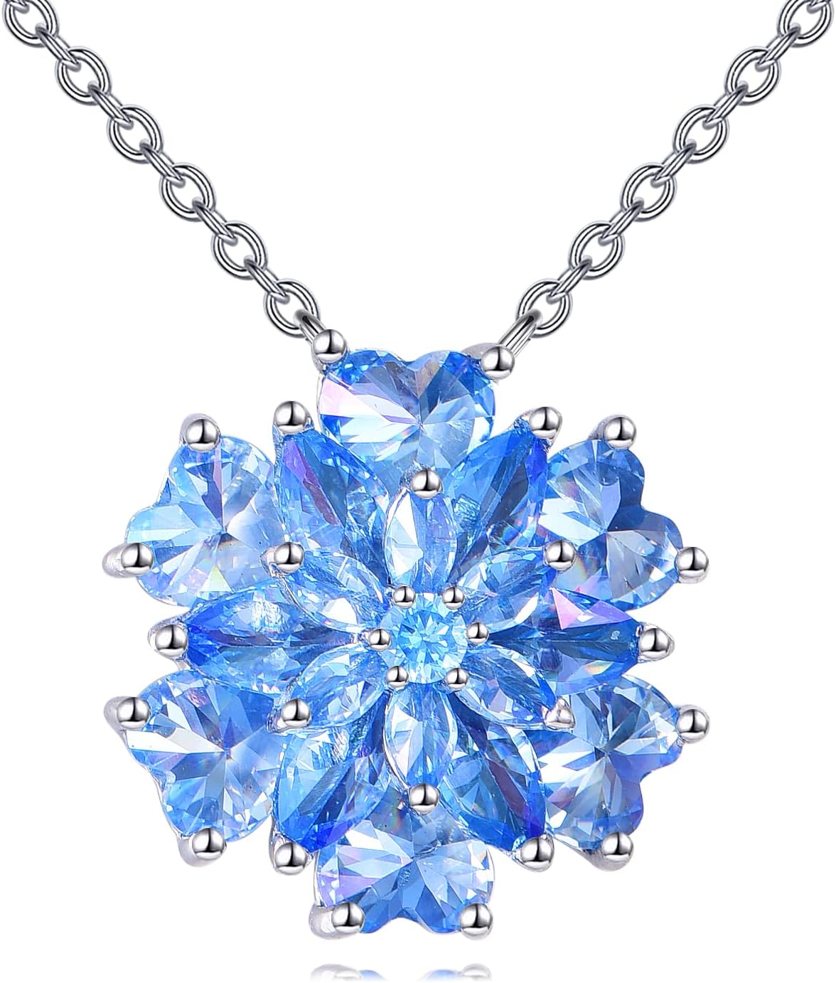 Flower Birthstone Necklace for Women 925 Sterling Silver Birthstone Cubic Zirconia Pendant Anniversary Birthday Jewelry Gifts for Her Wife Mom Daughter