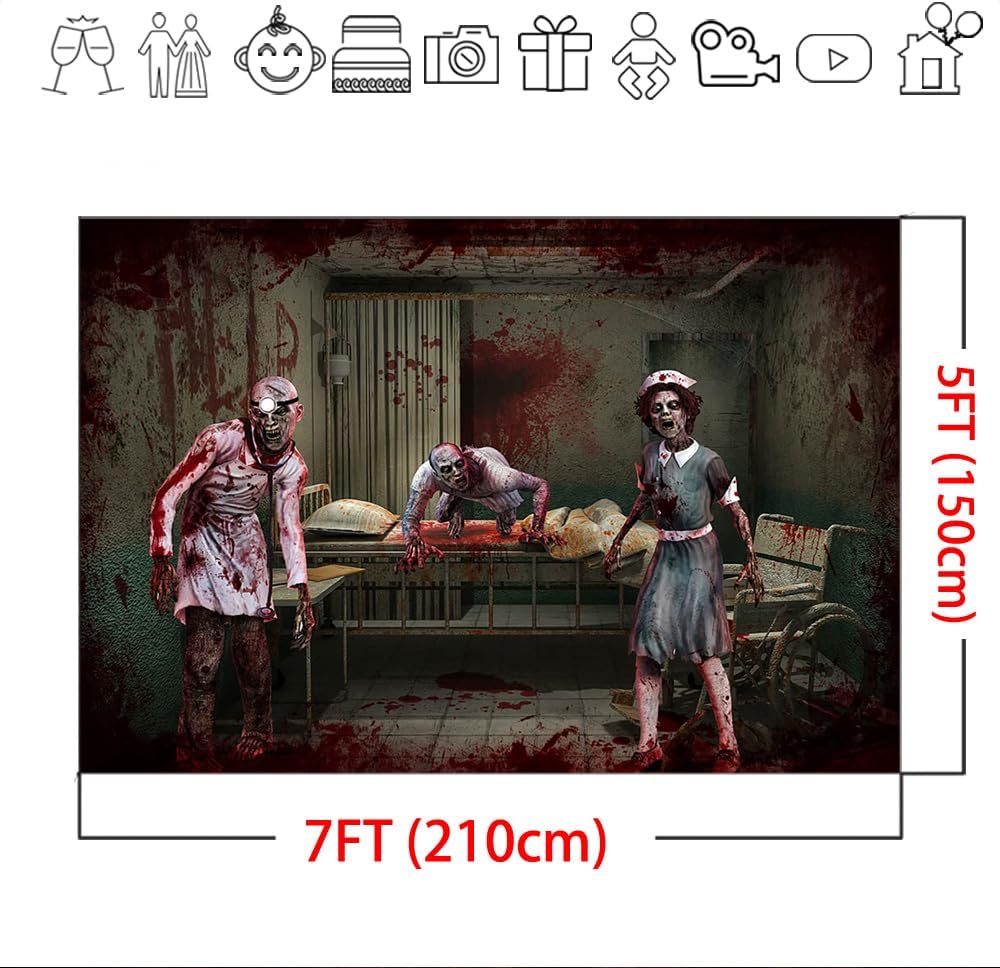 Mocsicka 7x5ft Halloween Hospital Themed Backdrop Insane Asylum Spooky Scary Hospital Infected Doctors and Nurses Zombie Halloween Party Background Decor