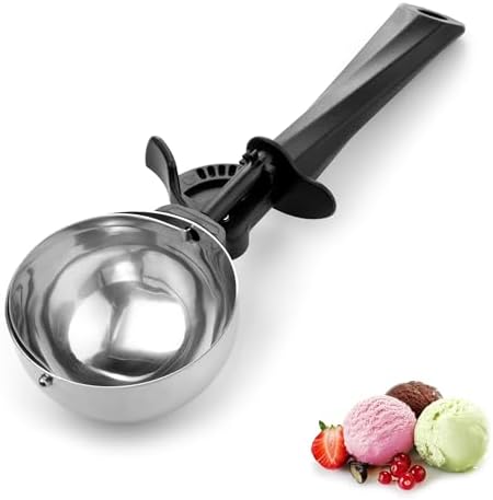 Large Ice Cream Scoop with Trigger, 4.5 oz (130ml) Stainless Steel Portion Scoop for Ice Cream, Sorbet, Melon, Cupcake Batter, Size #8