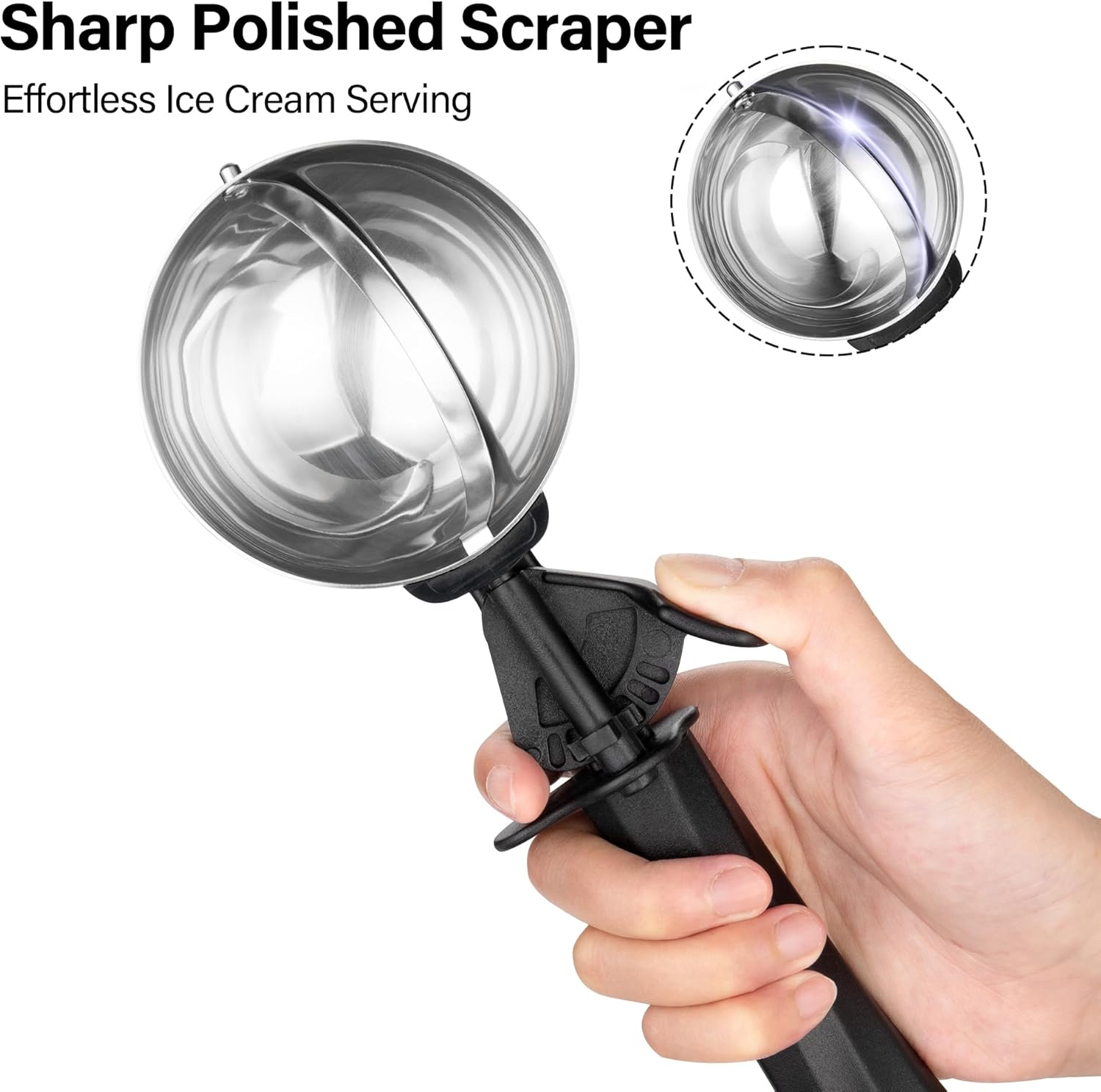 【Smooth Trigger for Easy Scooping】Equipped with a smooth trigger and advanced gear system, this ice cream scoop ensures effortless release with every use. It allows you to easily scoop and serve without sticking. Whether scooping one or several portions, the trigger ensures a smooth, easy experience every time.