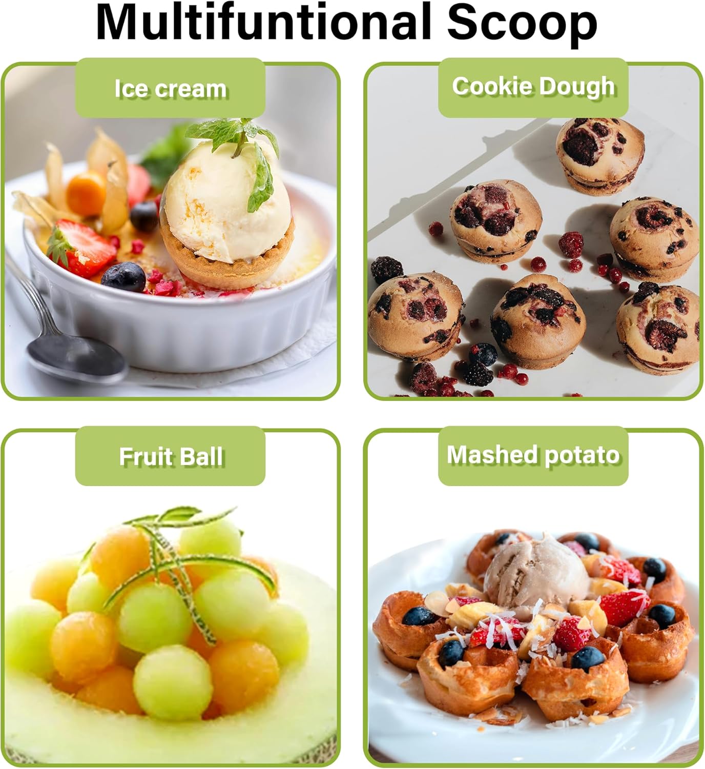 【Versatile Tool for Multiple Uses】This ice cream scoop is perfect for more than just ice cream; it excels at scooping cookie dough, muffin batter, and even fruits like melons. Its sturdy design allows for easy portioning of various consistencies, helping you create uniform servings for baking or snacking. This multifunctional scoop is a must-have for any kitchen.