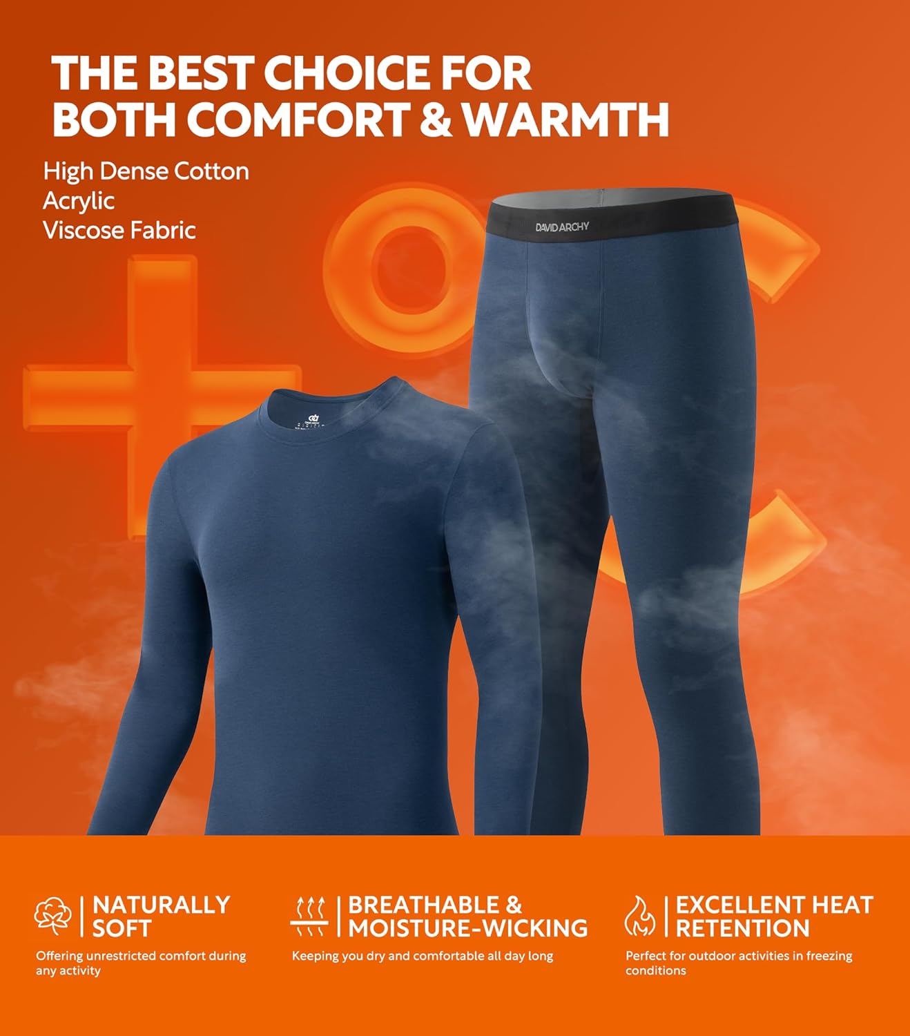 DAVID ARCHY Men’s Lightweight Thermal Underwear Breathable Comfort for Cool Weather, Ideal for Active Use