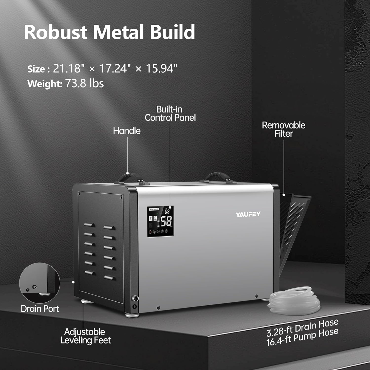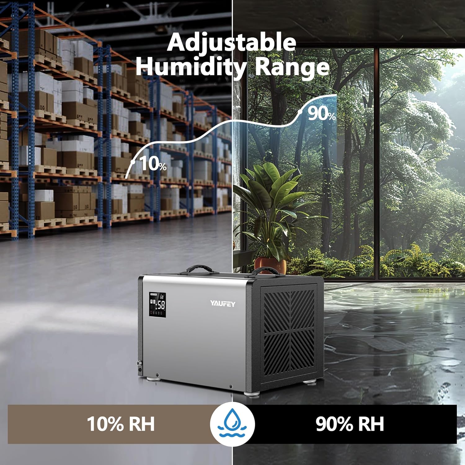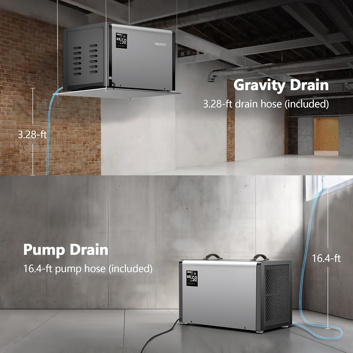 Yaufey 158 Pints Commercial Dehumidifier with Pump and Drain Hose for Crawlspace, Basements, Industrial Space, large room for Space up to 7500 Sq. Ft. - Auto Defrost, 5-Year Quality Coverage
