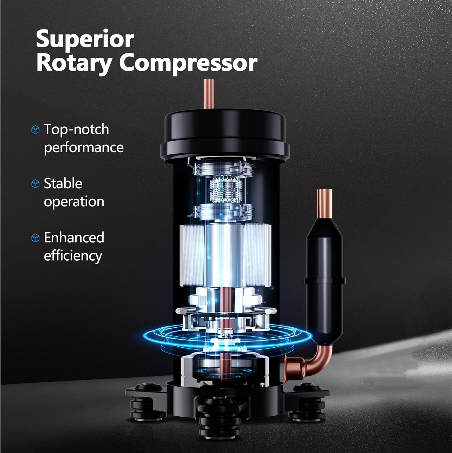 Auto Defrost Function: Featuring an advanced auto defrost system, this unit prevents frost build-up on coils, maintaining optimal performance even in colder environments like garages and cellars. Experience reliable and efficient operation year-round.