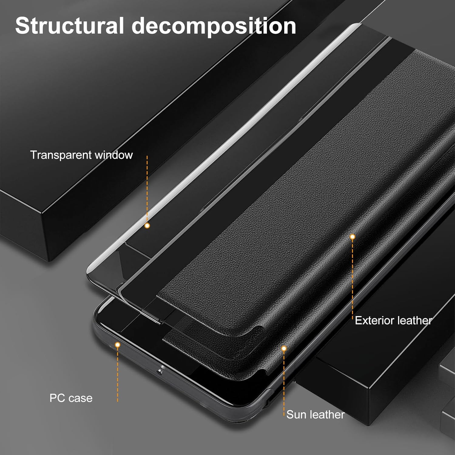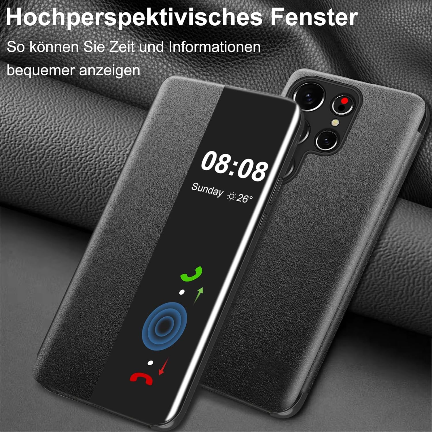 Funda de cuero con solapa para Samsung Galaxy S24 Ultra, funda protectora con ventana S-View transparente, funda rígida con ventana inteligente para Samsung Galaxy S24 Ultra, funda con solapa resistente a golpes para Samsung S24 Ultra 5G, funda transparente con vista