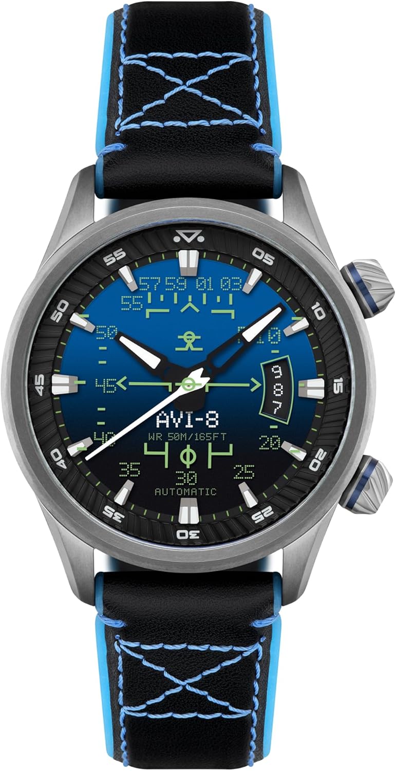 AVI-8 Men's 44mm Hawker Harrier HUD Automatic Watch with Rubber/Leather Strap AV-4117