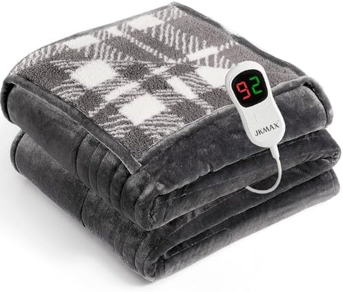 EXCELLENT DESIGN: JKMAX heating blanket has 10 heating levels and 5 time settings. The temperature range is 86-122 °F. You can choose your favorite temperature to set, and the controller only has three buttons, making the operation very simple