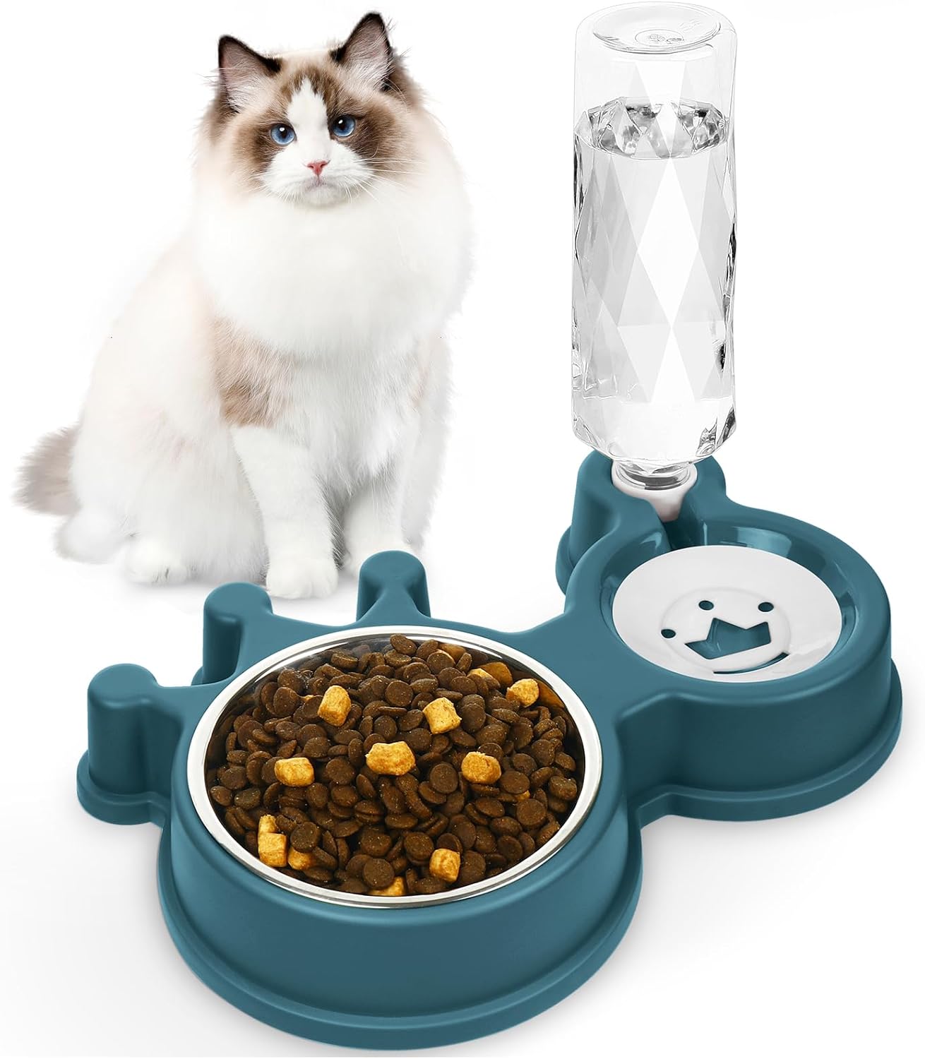 Cat Bowls, Dog Food and Water Bowl Set with Water Dispenser for Cats and Small Dogs