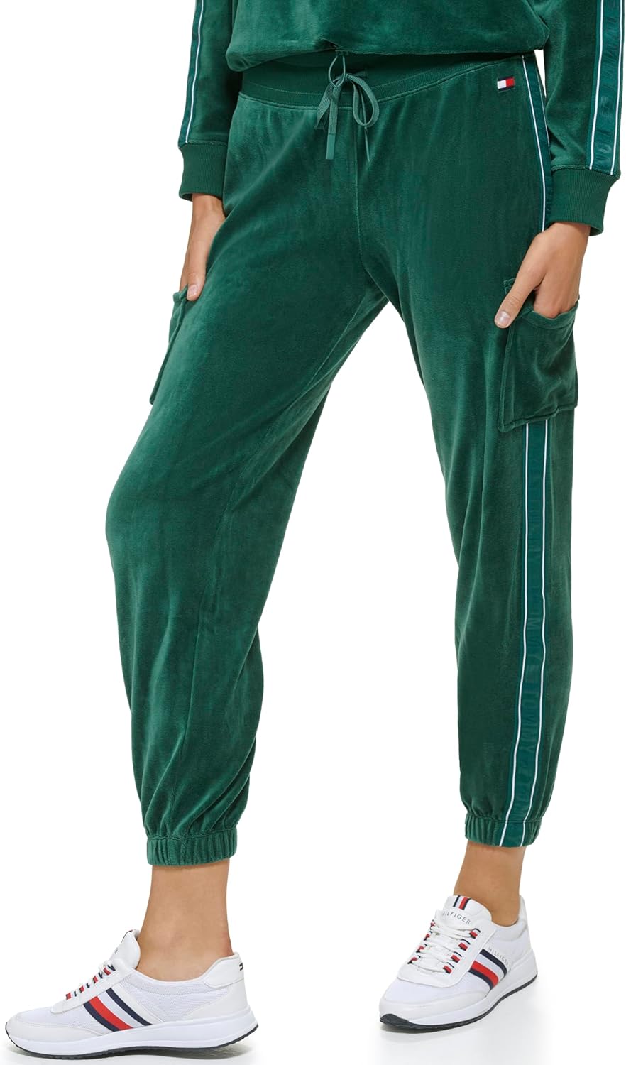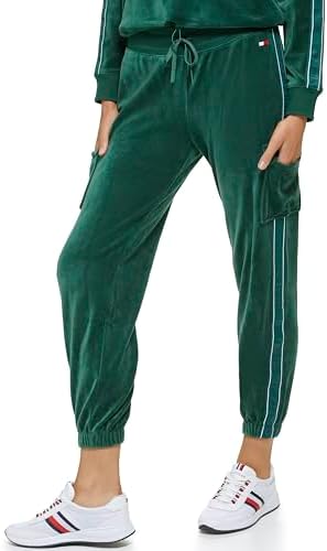 Tommy Hilfiger Women's Drawstring Waistband Velour Cargo Jogger