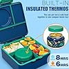 Premium & Kids-friendly Lunch Box: Bento box with thermos is made of premium BPA free ABS/PP plastic & silicone material which is odorless, non-toxic, safe & healthy for kids. Insulated food jar is made of 18/8 stainless steel, which is fully resistant to oxidation & corrosion. Drop-proof shell is durable, sturdy and not easy to break. Kids friendly latches designed make it easy for your child's small hands to open & close. Designed with a durable handle, kids can easily carry it on-the-go