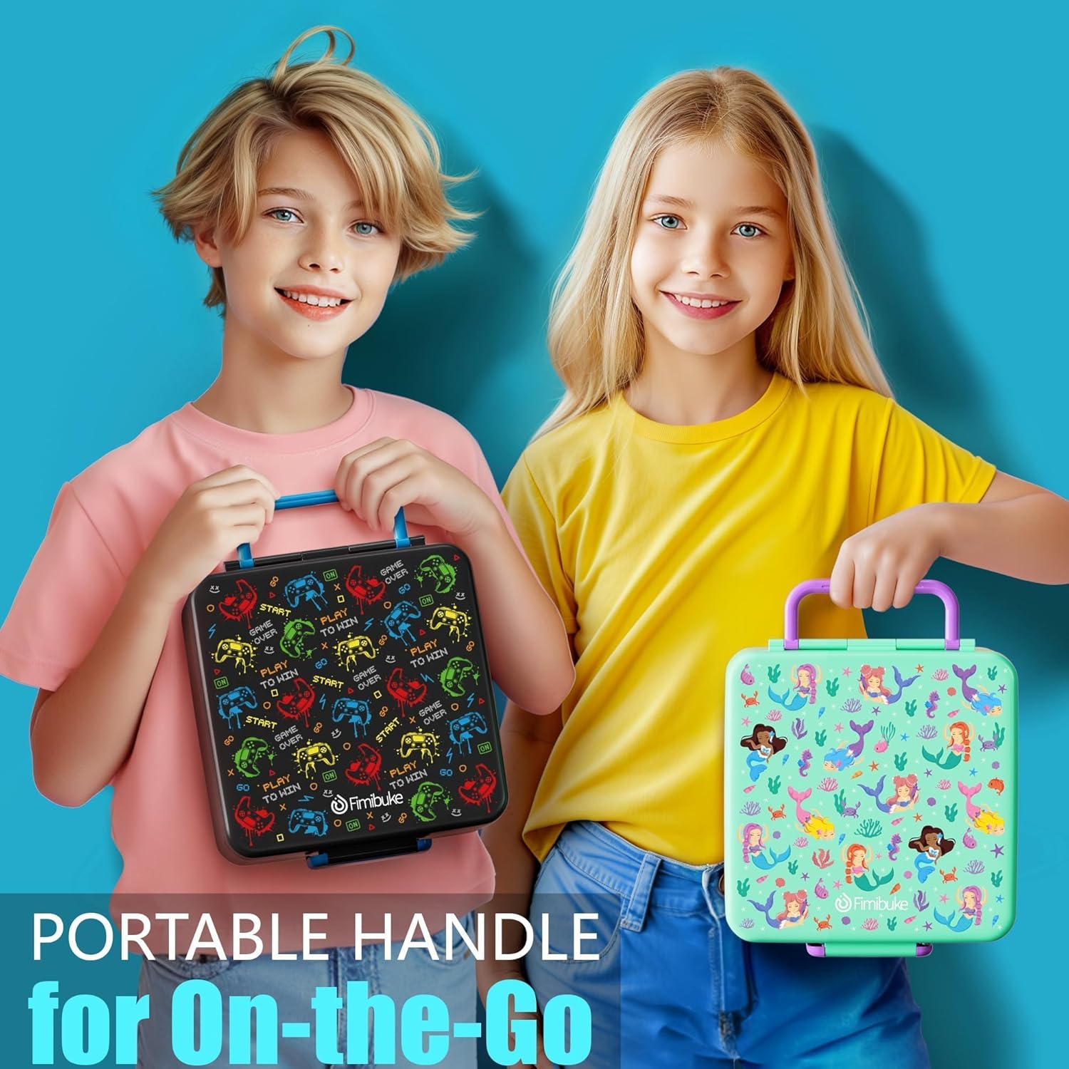 Exclusive Pattern Design: Fimibuke bento lunch box for kids & adults features brightly pattern & color: dinosaur, fairy & unicorn, mermaid, rainbow & butterflies, trucks, gamepad, blue & purple. Cute pattern & color on the outside cover is definitely let kids & adults going to be excited about & attract them excited to eat more lunch. Perfect for ages 3+ kids to daycare, nursery school, preschool, kindergarten, elementary school, middle school, summer camp, travel or work with a healthy lunch