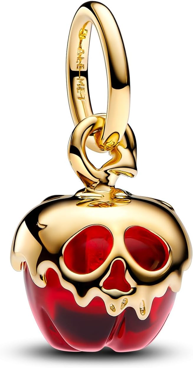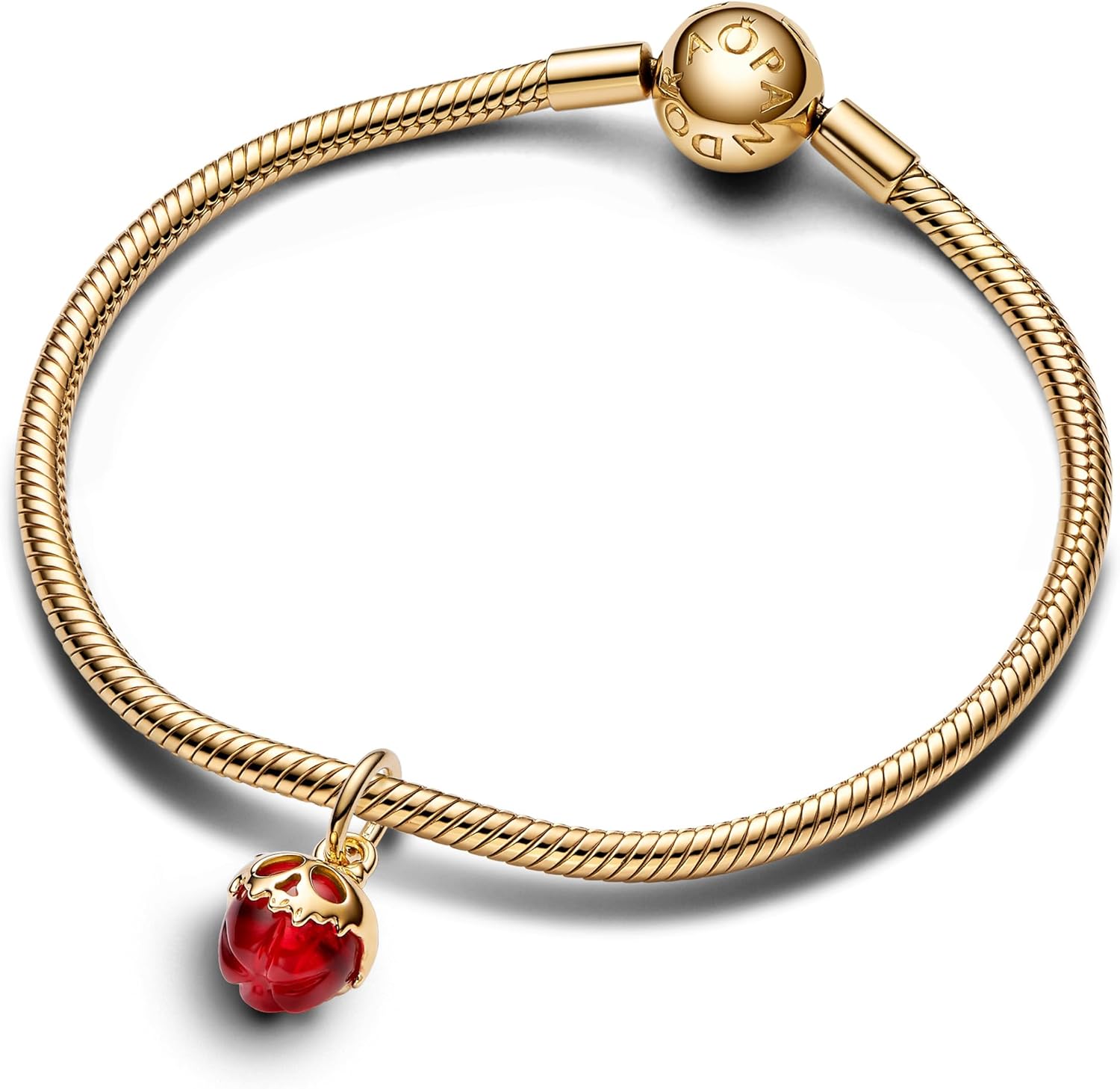 PANDORA Disney Villains Evil Queen Apple 14K Gold-Plated Dangle Charm with Red Murano Glass for Women, Yellow Gold, Medium, Yellow Gold, Kein Edelstein